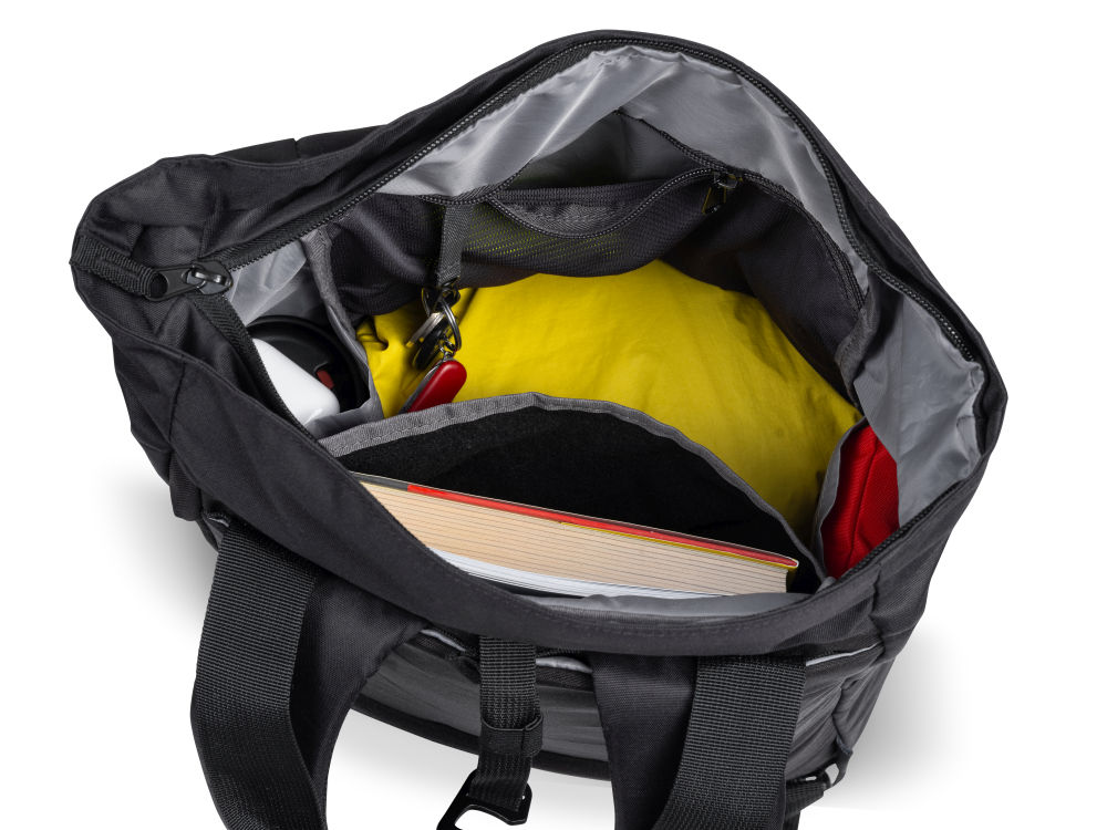 Všestranný batoh s polstrovanou kapsou na notebookoceníte pro každodenní použití i cestování. Pohodlí a praktičnost jednokomorového batohu kombinuje moderní design a funkčnost. Díky sbalitelným polstrovaným ramenním popruhům a dvěma uchům lze batoh pohodlně nosit jako tašku i klasicky na zádech. Batoh nabízí prostornou hlavní komoru s přístupem přes vrchní zip a praktické boční kapsy pro rychlý přístup k lahvi nebo drobnostem. Nechybí ani polstrovaná kapsa na notebook až do velikosti 16", která je snadno přístupná díky bočnímu vstupu. Batoh má dále přední kapsu na zip pro uložení drobností, vnitřní kapsu s organizérem pro lepší přehlednost, dvě vnitřní boční kapsy a speciální popruh na zadní straně, který umožňuje upevnění batohu na držadlo kufru. Vhodný pro každodenní použití, práci, školu i cestování.