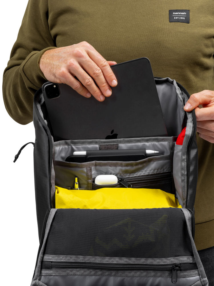 Jednokomorový batoh má nadstandardně široký vstup do batohu o celkovém objemu 22 litrů. Vyztužená záda s polstrovanými ramenními popruhy, které lze spojit odnímatelným hrudním popruhem. Hlavní prostor má vyztuženou kapsu na notebook o velikosti až "16" a siťovanou kapsu na zip. Batoh disponuje množstvím různorodých kapes pro přehledné uspořádání. Skrytá zipová kapsa na zádovém panelu má nejen bezpečnostní, ale i praktický význam. Pokud vám bederní popruh bude překážet či jej nevyužijete, lze ho jednoduše odejmout. Na batohu oceníte jednoduchý čistý design, praktické vnitřní zpracování a mechanicky odolný vnější materiál s voděodolnými zipy.