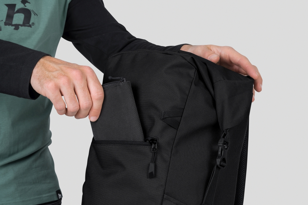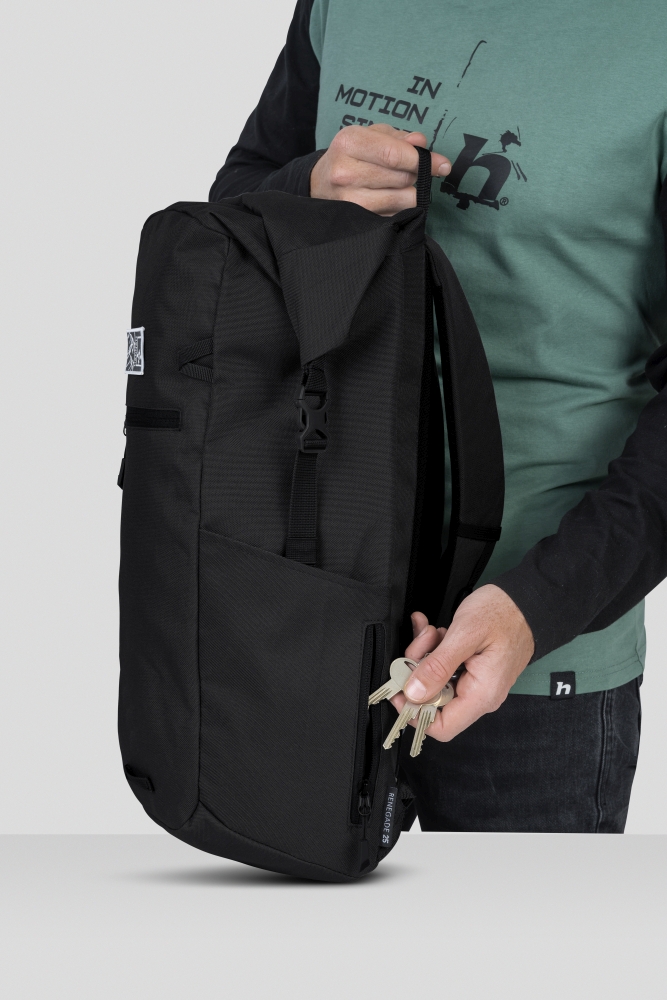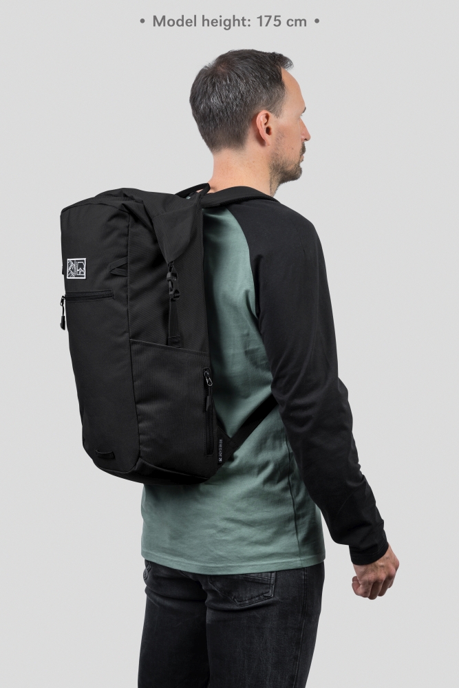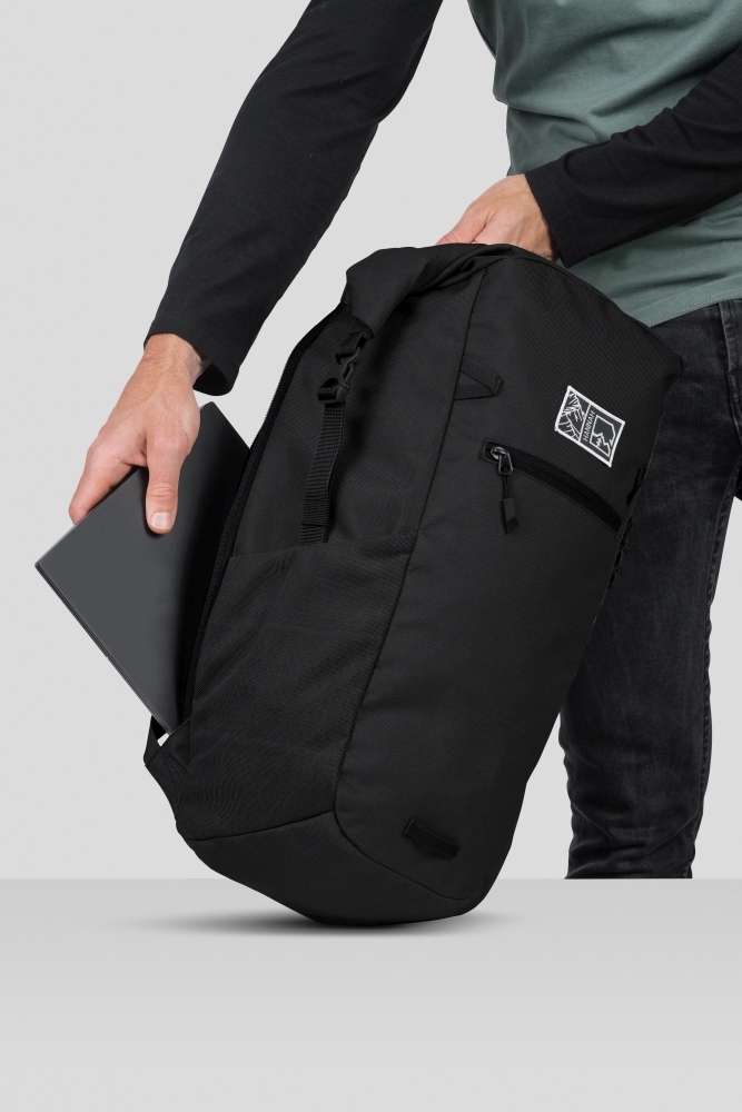 V hlavním prostoru najdete polstrovanou přihrádku na notebook, kterou lze obsluhovat i přes boční vstup z vnějšku batohu. Batoh je vyroben z recyklovaného polyesteru (na výrobu jednoho kusu bylo zrecyklováno 13 ks PET lahví o objemu 0,5l). Při výrobě tohoto produktu došlo tedy k významné úspoře energie a redukci uhlíkové stopy.