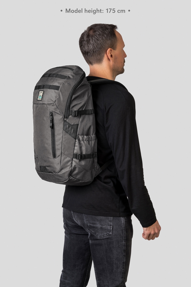 Jednokomorový batoh s pohodlným rozšířeným horním vstupem a polstrovanými zpevněnými zády a ramenními popruhy. Batoh má vícero kapes včetně organizéru pro snadné uspořádání. V hlavním prostoru najdete polstrovanou přihrádku na notebook. Batoh je vyroben z recyklovaného polyesteru (na výrobu jednoho kusu bylo zrecyklováno 14ks PET lahví o objemu 0,5l). Při výrobě tohoto produktu došlo tedy k významné úspoře energie a redukci uhlíkové stopy.