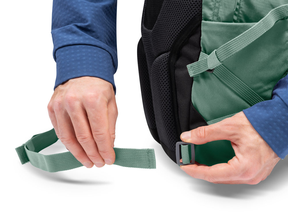 Jednokomorový turistický batoh o objemu 20 litrů je vyrobený z mechanicky odolného ripstop recyklovaného materiálu. Zádový systém Vario umožňuje proudění vzduch, pohodlí a stabilitu zajišťují nastavitelné polstrované ramenní popruhy a odnímatelný bederní popruh . Zádový systém i ramenní popruhy jsou zároveň vyrobené z prodyšné a rychleschnoucí mechanicky odolné síťoviny. Na hrudním popruhu, kterým zajistíte stabilitu ramenních popruhů, najdete pohotovostní píšťalku. Nechybí úchyty na trekové hole , dvě boční kapsy a přední síťovaná kapsa mohou sloužit pro rychlé odložení částí oblečení či drobností. Batoh lze jednoduše stáhnout bočními kompresními popruhy na menší objem. Nechybí integrovaná pláštěnka s reflexními prvky a kapsa na vodní rezervoár s vývodem. Batoh je vyroben z recyklovaného polyesteru (na výrobu jednoho kusu bylo zrecyklováno 10ks PET lahví o objemu 0,5l). Při výrobě tohoto produktu došlo tedy k významné úspoře energie a redukci uhlíkové stopy.