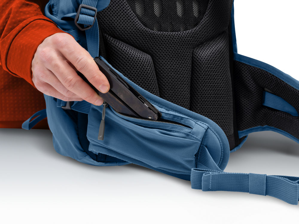 Jednokomorový turistický batoh 35 litrů je vyrobený z mechanicky odolného ripstop recyklovaného materiálu. Zádový systém Vario umožňuje proudění vzduch, pohodlí a stabilitu zajišťují nastavitelné polstrované ramenní popruhy a bederní pás s dvěma kapsami. Zádový systém i ramenní popruhy jsou zároveň vyrobené z prodyšné a rychleschnoucí mechanicky odolné síťoviny. V horní části ramen lze popruhem přitáhnout nebo povolit batoh, a tím i regulovat zatížení zad dle potřeb v terénu. Na hrudním popruhu, kterým zajistíte stabilitu ramenních popruhů, najdete pohotovostní píšťalku. Nechybí úchyty na cepín nebo trekové hole či na jiný potřebný materiál. Dvě boční kapsy a přední síťovaná kapsa mohou sloužit pro rychlé odložení částí oblečení či drobností. Batoh lze jednoduše stáhnout bočními kompresními popruhy na menší objem. Nechybí integrovaná pláštěnka s reflexními prvky a kapsa na vodní rezervoár s vývodem. Batoh je vyroben z recyklovaného polyesteru (na výrobu jednoho kusu bylo zrecyklováno 14ks PET lahví o objemu 0,5l). Při výrobě tohoto produktu došlo tedy k významné úspoře energie a redukci uhlíkové stopy.