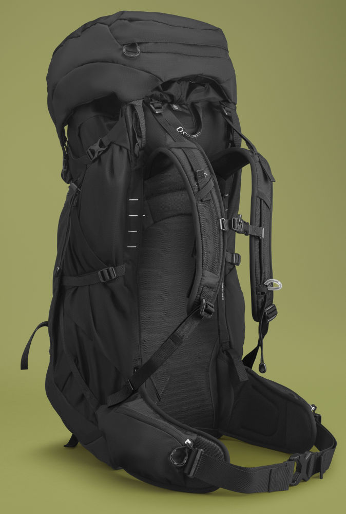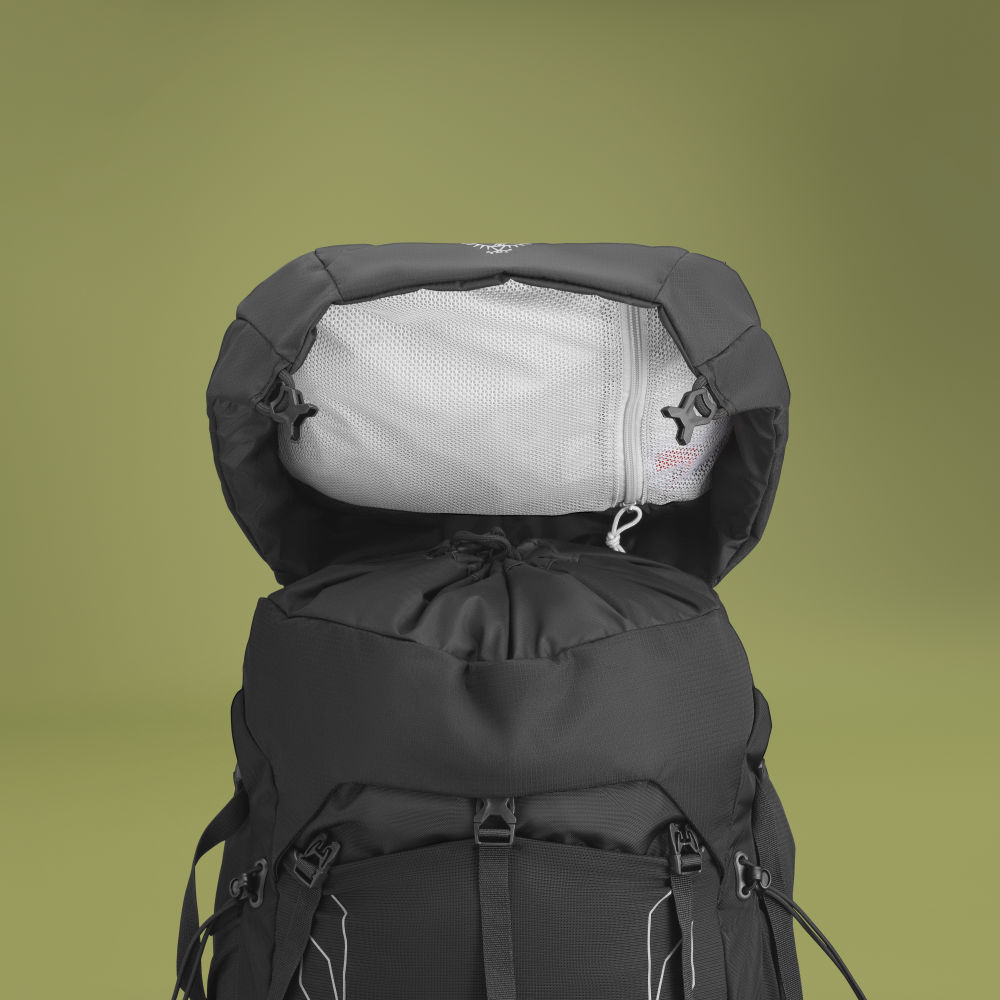 Kromě oblíbených kapes na bederním pásu a ramenních popruzích nabízí úchyty na trekové hole a cepíny, oddělenou přihrádku na spacák a možnost uchycení karimatky.