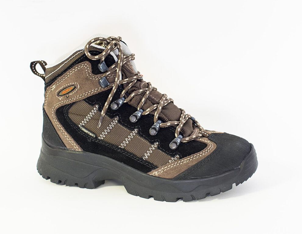 Svršek dětské turistické obuvi ALPINA VEGA je vyroben z kvalitní broušené kůže v decentním ladění hnědých barev o síle 1,6 mm
