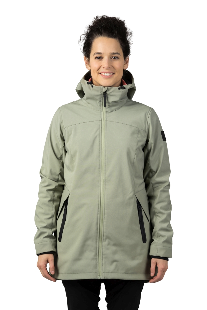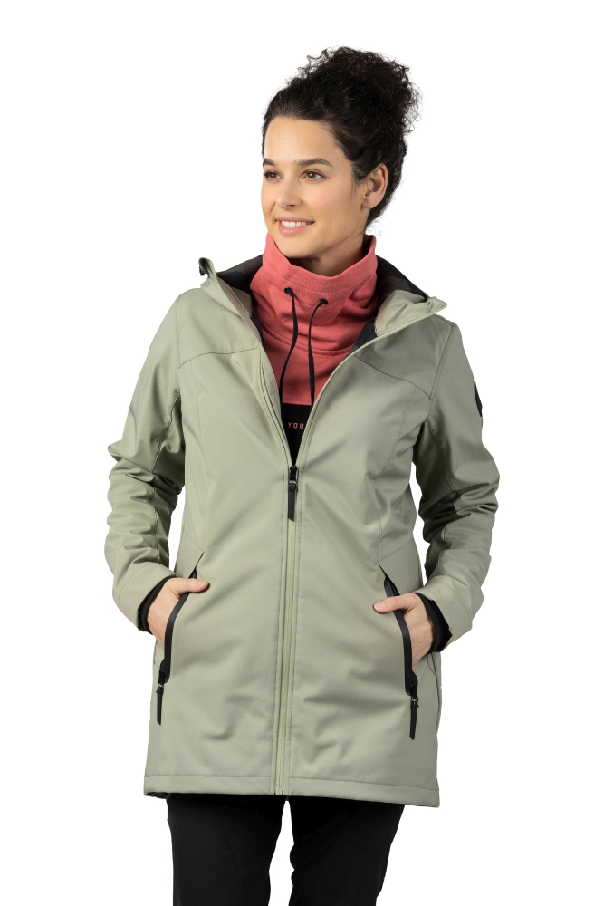 Tato dámská softshellová, volnočasová bunda Hannah Akame se hodí jak do města, tak i na lehčí trek. Akame je z materiálu Softshell s membránou 8 000 s DWR úpravou. Je lehká, větruvzdorná, ale zároveň prodyšná. Pohodlný střih Regular fit sedí většině typů postav, spodní okraj bundy je regulovatelný, stejně jako kapuce. Rukávy jsou anatomicky tvarované a zakončené rukávovou manžetou. Záda v teple zajistí prodloužená délka a fleecová podšívka. Bunda má dvě přední hlavní kapsy na zip.