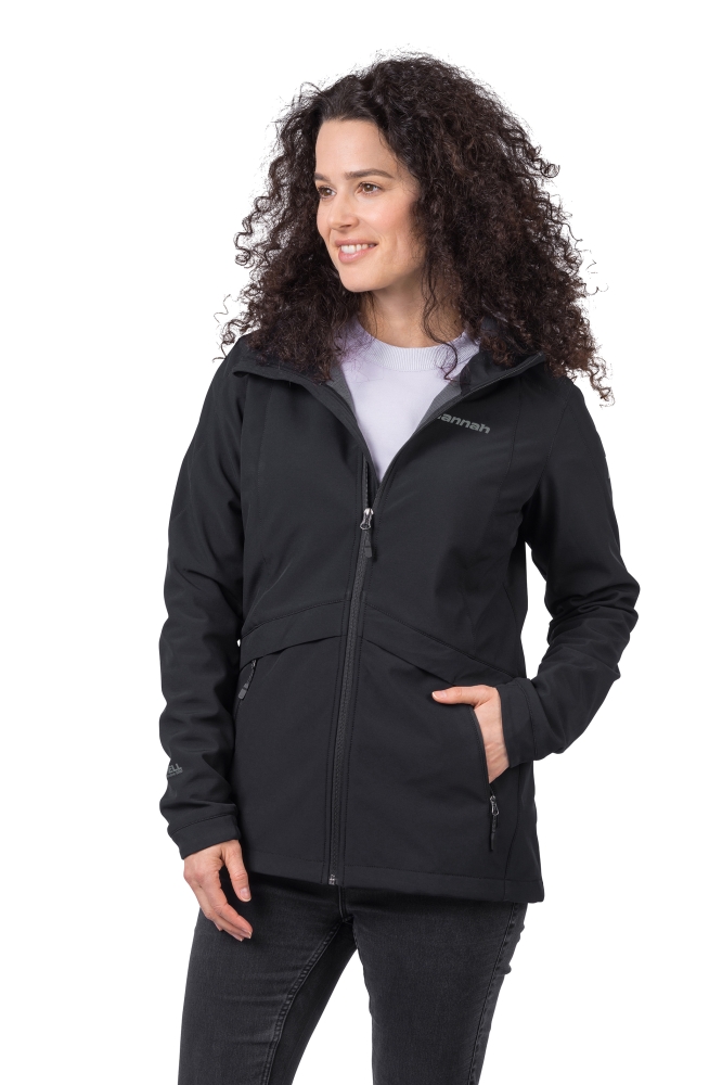 Dámská zimní softshelová bunda Hannah Bria s nepromokavou a prodyšnou membránou. Bunda je vyrobena z 3-vrstvého pružného softshell materiálu s membránou 8000, která zajistí větruvzdornost, nepromokavost a neomezuje prodyšnost směrem ven. Vnitřní gridová struktura plní funkci tepelné izolace, proto najde uplatnění v chladnějších podmínkách. Svrchní materiál má povrchovou Teflon EcoElite úpravu, která se pyšní prvenstvím v rostlinných impregnacích. Biologická a nefluorovaná technologie odpuzuje vodu, nečistoty i skvrny na vodní bázi. Bunda je komfortního střihu s kapucí se stahováním a anatomicky tvarovanými rukávy, které jsou zakončené do gumy. Spodní kraj bundy je na stahování. Součástí jsou 2 hlavní kapsy na zip. Vhodná pro každodenní nošení či pohyb v přírodě.