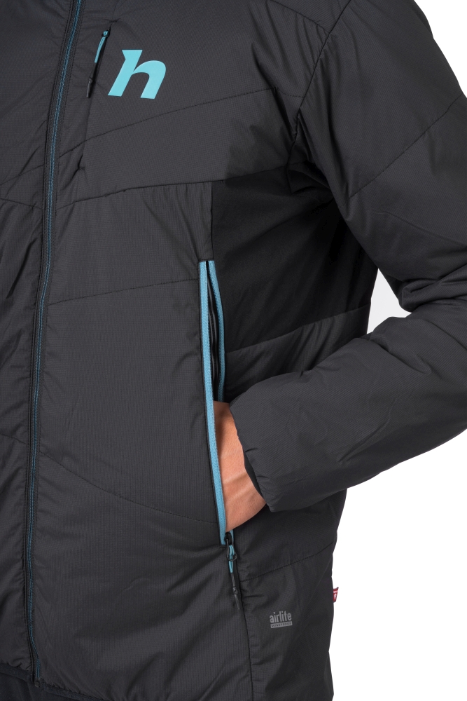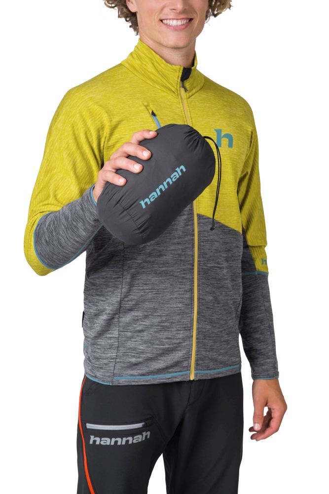 Lehká a praktická pánská zateplená bunda s kapucí Hannah Kechu Hoody je vhodný kousek do zimního terénu na skitouring a aerobní aktivity. Dá se snadno sbalit do praktického transportního obalu. Zahřeje a se svou váhou 395 g je skvělým společníkem. Bunda je plněna značkovou výplní z dutého vlákna Primaloft Silver Active, která vás udrží v teple i ve vlhkých podmínkách. Kombinace materiálů Airlite Windproof a AFT Double Weave zajišťuje ochranu proti větru a dešti, odolnost vůči oděru a rychlý odvod tepla, abyste zůstali v suchu. Bunda je ošetřena ekologickou PFC FREE úpravou. Centrální YKK zip a YKK zipy hlavních kapes jsou voděodolné, stejně tak skrytý YKK zip na praktické kapse na hrudi. Efektně prošité díly z pružného materiálu dodají bundě nadčasový vzhled. Rukávy a zadní díl jsou zhotoveny z prodyšného elastického materiálu, díly z pružného materiálu. Reflexní prvky jsou součástí výbavy.