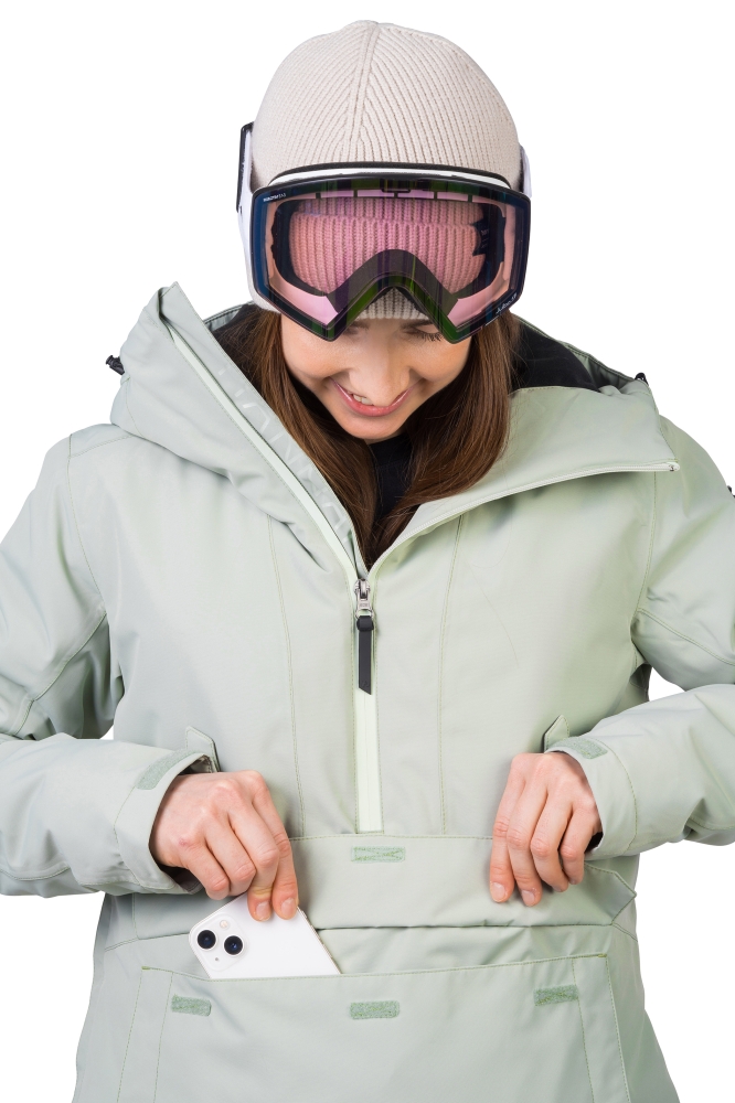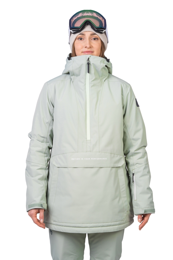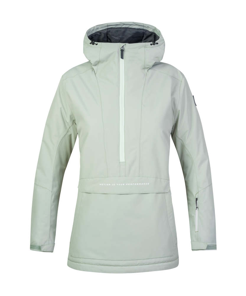 Dámský lyžařský anorak Hannah Megie s membránou Resstex 10 000. Komfortní střih lyžařské bundy přes hlavu má nepromokavou a zároveň prodyšnou membránu Resstex 10 000 a hlavní voděodolný půl zip. O izolaci se postará Duratherm Classic duté vlákno a svrchní nenasákavost bundy zajistí DWR úprava. Bunda má boční dlouhé rozepínání pro snadnější oblékání a svlékání a přední prostornou kapsu s patkou s hlavními kapsami na zip. Součástí je i kapuce s regulací, sněhový límec v pase, vnitřní kapsa na brýle a rukávová kapsa na skipas. Anatomicky tvarované rukávy jsou zakončené stahováním patkou se suchým zipem, uvnitř rukávu je elastická manžeta zabraňující úniku tepla.