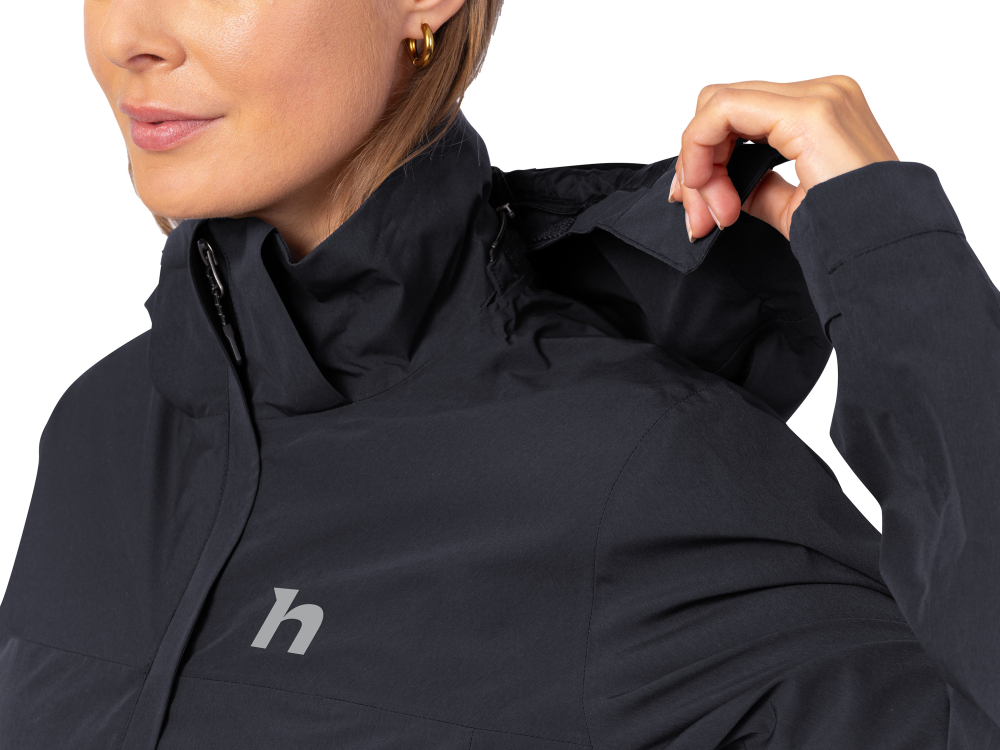 Dámská membránová bunda s Climatic Element membránou a kompletně podlepenými švy spolehlivě ochrání před deštěm a větrem. Povrchová úprava DWR - C6 je šetrnější k životnímu prostředí a zajistí nenasákavost vrchního materiálu. Bunda má Regular střih s anatomicky tvarovanými rukávy zakončené lepenou patkou na suchý zip. Membrána s vodním sloupcem 10 000 a kompletně podlepenými švy zajistí nepromokavost a prodyšnost. Odvod přebytečné vlhkosti je podpořen přidaným odvětrání v podpaží na zip krytý lepenou légou. Centrální nepromokavý zip je navíc decentně skrytý lepenou légou. Síťovaná jemná podšívka zvyšuje komfort v případě nošení bundy přes tričko s krátkým rukávem. V dolním lemu bundy je skryté stahování pro regulaci obvodu. Bunda je vhodná na veškeré outdoroové aktivity se zaměřením na turistiku, cestování a pohyb v přírodě.