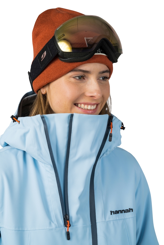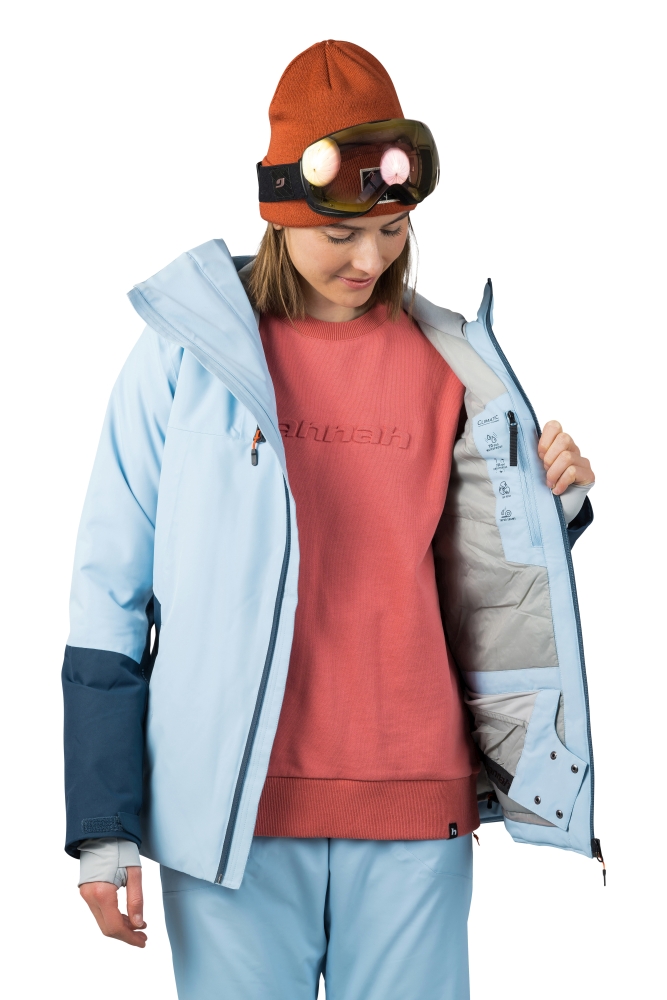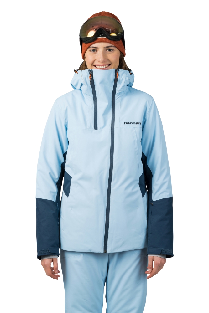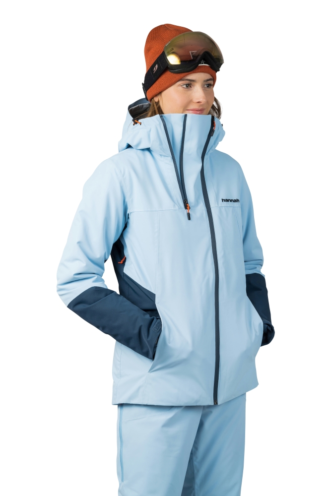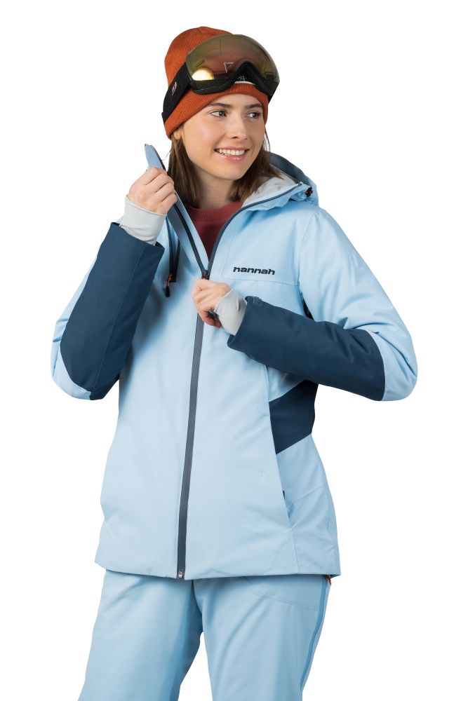 Mladistvý design a atraktivní barvy jsou poznávacími prvky dámské lyžařské bundy Hannah Naomi, kterou ocení sportovně laděné lyžařky. Na první pohled na bundě zaujme asymetrický límec se zipem s možností odvětrání pomocí druhého zipu. Membránový materiál Climatic Element s vodním sloupcem 10 000 mm s DWR úpravou doplňuje izolační výplň Duratherm Pro. Centrální YKK zip a zip hlavních kapes jsou voděodolné. Anatomicky tvarované rukávy zakončené stahováním patkou se suchým zipem, přinechaná kapuce s regulací či spodní kraj s regulací šířky vám dopřeje maximum pohodlí. Rukávová kapsa na skipas s voděodolným zipem YKK, elastické rukávové manžety s otvorem na palec, sněhový límec či systém vnitřních kapes jsou samozřejmostí. Během jarního lyžování uživatel ocení boční odvětrání. Lepené rukávové patky a kšilt jsou praktickým a luxusním doplňkem a spolu s 3D logem vytváří trendy vzhled bundy. Díky střihu regular sedí většině postav. K této bundě lze zakoupit do kompletu lyžařské kalhoty Hannah Nara ve stejných parametrech i materiálech.