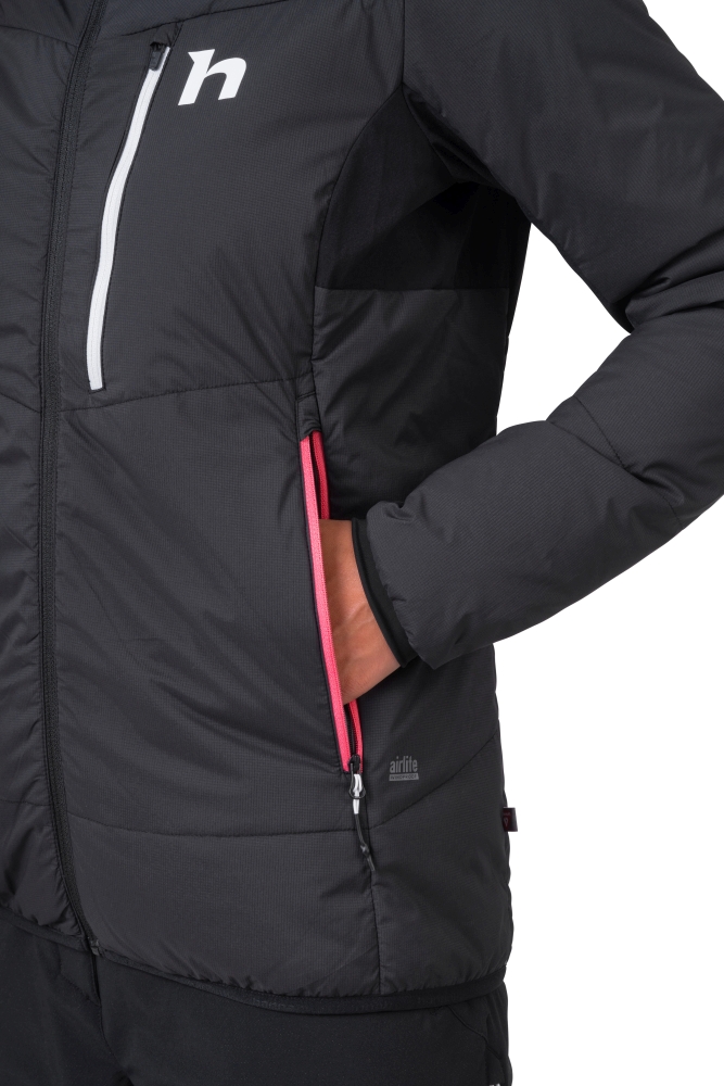 Nezbytná součást výbavy po celý rok, to je zateplovací hybridní dámská bunda Hannah Nava Hoody, která se díky nízké hmotnosti a sbalitelnosti hodí kamkoliv, ať už vyrazíte skitouringovou túru nebo výlet na běžkách. Kombinace materiálů Airlite Windproof a AFT Double Weave zajišťuje ochranu proti větru a dešti, odolnost vůči oděru a rychlý odvod tepla, abyste zůstala v suchu. Bunda Nava Hoody je plněna značkovou výplní z dutého vlákna Primaloft Silver Active, která vás udrží v teple i ve vlhkých podmínkách. Finální povrchová vodoodpudivá úprava PFC FREE zlepšuje funkční vlastnosti oblečení. Bunda je vybavena dvěma kapsami s kvalitními YKK zipy a jednou kapsou na hrudi. Ve spodním lemu je ukryta regulace obvodu.