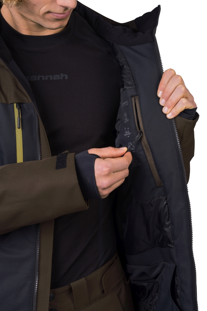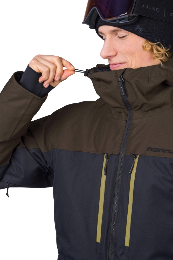 Pánská lyžařská bunda Hannah Niel s parametry vodního sloupce a prodyšnosti v hodnotách 10 000. Lyžařská bunda v technickém střihu má pružný materiál ošetřen svrchní vodoodpudivou úpravou. Membrána Climatic Element s parametry 10 000mm vodní sloupec a 10 000 prodyšnost tě spolehlivě ochrání proti promoknutí při zachování prodyšnosti. O tepelnou izolaci se postará materiál Duratherm Pro, který zaručí optimální komfort a funkčnost i za vlhka. Bunda má skvělou výbavu. Od voděodolných YKK zipů na centrálním zipu a hrudních kapsách, dále odvětrání v podpaží, vnitřní systém kapes a sněhový límec v pase. Anatomicky tvarované rukávy s kapsou na zip na skipas jsou zakončené stahováním patkou se suchým zipem. Vnitřní elastické rukávové manžety s otvorem na palec snižují únik tepla a zároveň zajistí, aby sníh zůstal tam kde má. Systém propojení bundy a kalhot umožňuje snadné připnutí lyžařských kalhot Hannah Wiel.