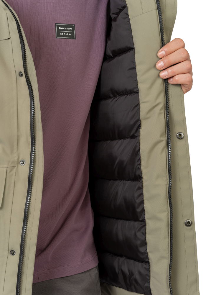Pánská nepromokavá parka Hannah Northpole je ideální volbou do města a pro volný čas. Odolnost proti dešti a mokrému sněhu zajišťuje membrána Resstex 5000 s DWR úpravou. Izolace s polyesterovým vláknem Duratherm Classic poskytuje dostatečný tepelný komfort a optimální funkčnost. Hlavní švy jsou podlepené a hlavní zip je krytý légou. Díky prodlouženému zadnímu dílu vám bude vždy teplo na záda a hlavu si můžete schovat do kapuce s regulací. Rukávy se dají stáhnout patkou s drukem a manžeta na konci rukávu nedovolí, aby tudy unikalo teplo. Dvě hlavní dvojité měchové kapsy jsou kryté patkou a uvnitř bundy najdete ještě kapsu na zip. Dekorativní prošití podšívky podtrhává moderní a ležérní vzhled.
