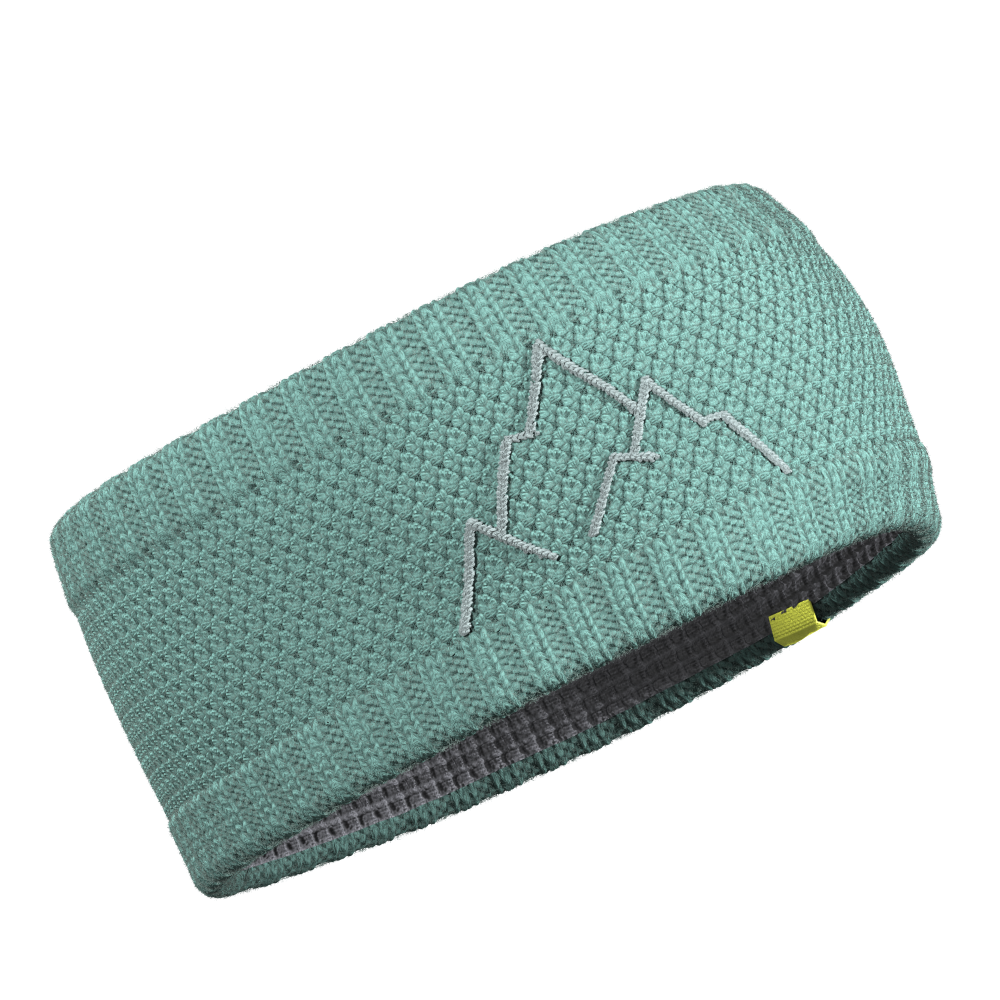 Pletená čelenka z merino vlny s barevně kontrastní výšivkou. Na vnitřní straně má čelenka funkční syntetickou podšívku. Klasický způsob pletení čelenky přechází na krajích k žebrovanému úpletu , který se dobře přizpůsobí obvodu hlavy a zároveň působí jako dekorativní prvek. Moderní design čelenky v přírodním materiálu dokresluje kontrastní výšivka hor.