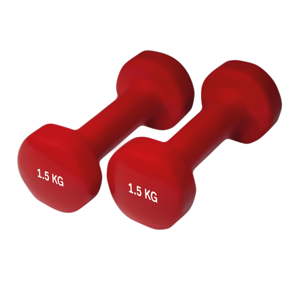 Železné činky 1,5 kg s ochrannou neoprenovou vrstvou.