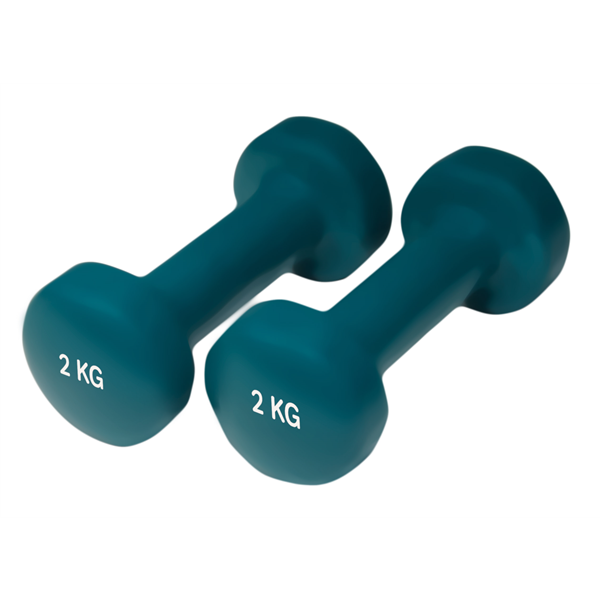 Železné činky 2 kg s ochrannou neoprenovou vrstvou.
