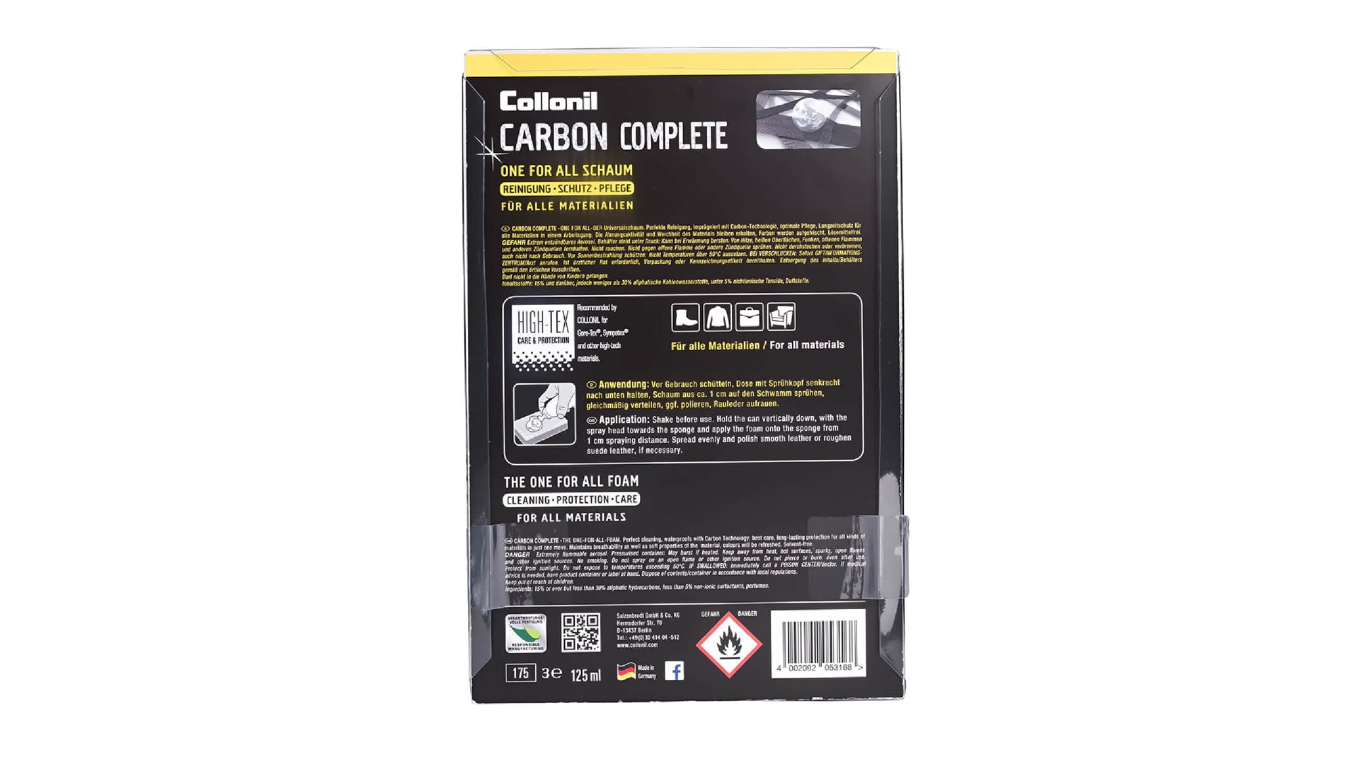 Univerzální pěna s karbonovou technologií. Perfektně čistí, impregnuje a ošetřuje v jednom kroku. Chrání před vlhkostí, udržuje prodyšnost stejně jako pružnost materiálu, osvěžuje barvy. Zabezpečuje dlouhotrvající ochranu pro všechny druhy materiálů. Neobsahuje rozpouštědla a lze ji použít i v uzavřených prostorách.