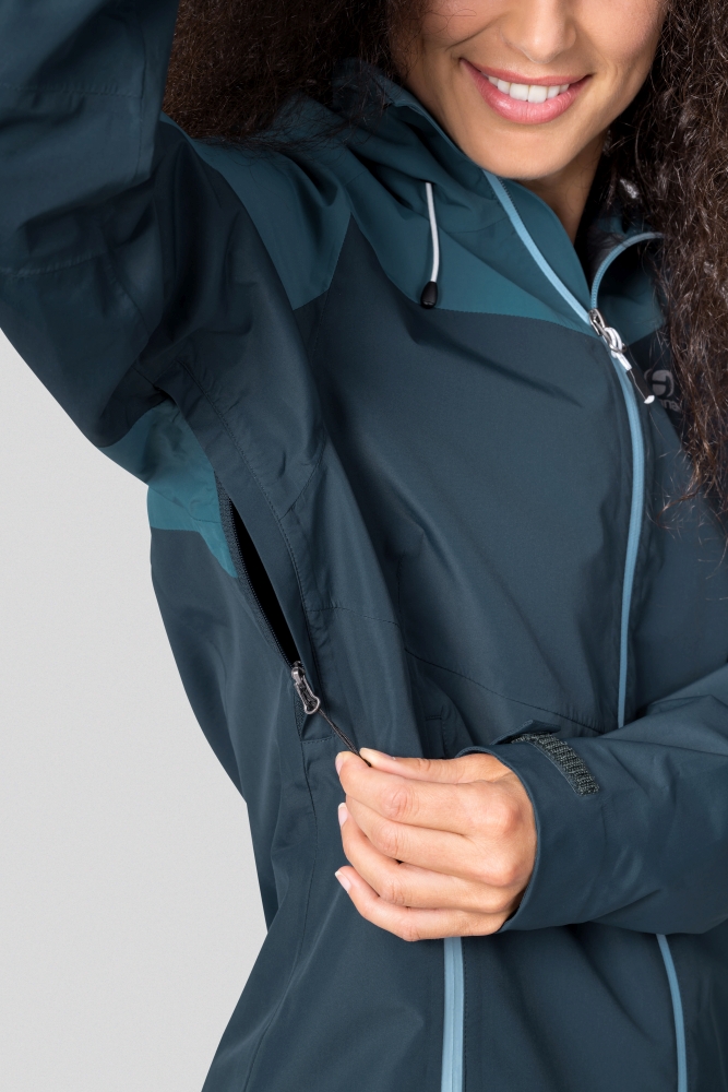 Posuň se o kus dál a chyť se příležitosti, kterou ti Abigail nabídne. Dámská nepromokavá bunda Hannah Abigail se hodí pro celoroční nošení a obzvlášť dobře ti poslouží na túrách v náročných podmínkách. Je vyrobena z funkční neporézní membrány Climatic Element s nepromokavostí 10 000 mm H2O, prodyšností 10 000 g/m2 za 24h. Díky 3L technologií nalaminování membrány mezi vnější a vnitřní materiál je bunda mechanicky odolnější, pevnější a vydrží déle. Bunda je nepromokavá, prodyšná a zaručuje optimální ochranu při nepříznivých klimatických podmínkách. Povrch bundy je ošetřen vodoodpudivou úpravou DWR C6. Použití technologie lepení drobných dílů a podlepených švů přispívá k nepromokavosti oblečení. Anatomicky tvarované rukávy zajišťují pohodlné nošení. Střih Regular ti dovolí obléct si v chladném počasí ještě jednu vrstvu, je-li to potřeba. Při delších túrách jistě oceníš odvětrávání na bocích. Zipy jsou voděodolné a u kapuce, spodního okraje i rukávů lze regulovat šířku. Abigail ti bude skvělým parťákem na krátké túře, vícedenním treku v horách nebo třeba na ferratách.
