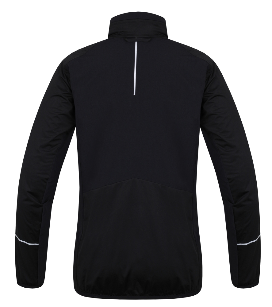 Sbalitelná kapuce / rukávy lemované gumou s otvorem na palec / spodní kraj lemovaný gumou / přední díl z větruodolného materiálu / boční a zadní díly z prodyšného materiálu / reflexní prvky / 100% polyester / 89% polyamide + 11% elastan