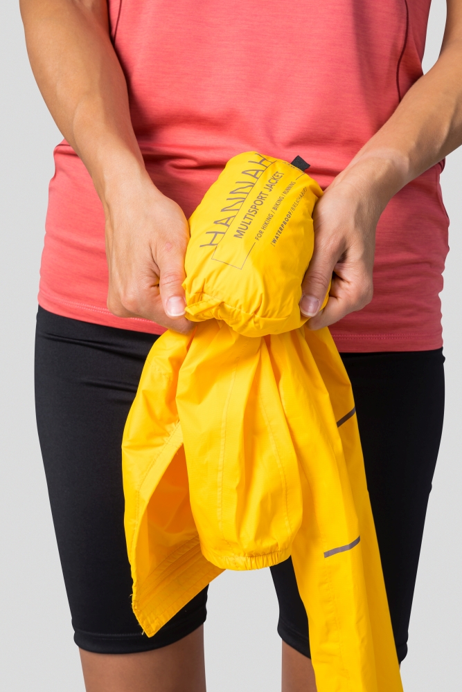 Miley je lehká sbalitelná bunda pro milovníky aktivního sportu, jako je cyklistika nebo běh. Vyvinutá je jako záložní bunda, poskytují ochranu před náhlým deštěm. Je vyrobena z nepromokavého, větruvzdorného materiálu a dá se jednoduše sbalit do vlastní kapsy. Má kapuci staženou do gumy, stejně jako spodní okraj a rukávy, které jsou navíc anatomicky tvarované a na konci mají otvor na palec. Bunda má několik kapes – dvě hlavní a jednu vnitřní kapsu na zip, která slouží jako transportní obal. Pohodlný střih Regular neomezuje v pohybu. Podlepené švy zvyšují ochranu před deštěm a díky reflexním prvkům budeš skvěle vidět i při zhoršené viditelnosti. Pokud jsi aktivní žena a miluješ pohyb v přírodě, s touto bundou neuděláš krok vedle.
