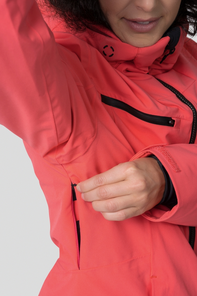 Moderní dámská lyžařská bunda vyšší řady Hannah Amabel, která splňuje vysoké nároky zkušených lyžařek. Slibuje 100% ochranu před přírodními živly a zároveň nabízí kvalitní pevný materiál odolávající mechanickým vlivům. Membránový materiál Climatic Active Stretch s vodním sloupcem 15 000 mm s DWR úpravou doplňuje izolační výplň Thermore. Amabel disponuje voděodolnými YKK zipy. Tato bunda je předurčena na ALL MOUNTAIN využití, proto jsme ji vybavili RECCO reflektorem. Anatomicky tvarované rukávy zakončené stahováním patkou se suchým zipem, neodepínatelná kapuce s regulací či spodní kraj s regulací šířky vám dopřeje maximum pohodlí. Rukávová kapsa na skipas, elastické rukávové manžety s otvorem na palec, sněhový límec v pase či systém vnitřních kapes samozřejmě nesmí chybět. Bunda má hlavní kapsy na zip, vnitřní prostornou kapsu a hrudní kapsu na zip. Během jarního lyžování uživatelka ocení boční odvětrání. Lepené rukávové patky a kšilt jsou praktickým a luxusním doplňkem a spolu se silikonovým protiskluzovým printem na ramenou a 3D logem vytváří luxusní vzhled bundy. K této bundě lze zakoupit do kompletu lyžařské kalhoty Hannah Hally II ve stejných parametrech i materiálech.