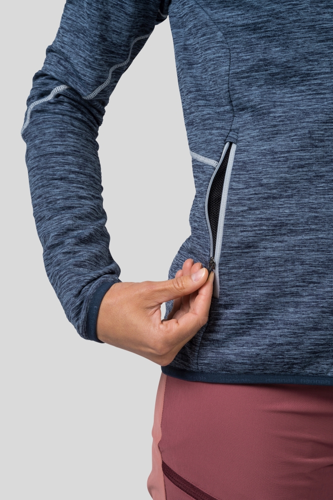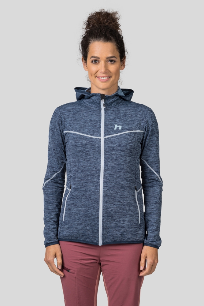 Dámská mikina s kapucí a dekorativním prošitím Dagnys Hoody je ideální pro trávení volného času, ať už vyrazíš na trek nebo za jiným aktivním sportem. Strečový a lehký materiál Polarstretch Grid díky své speciální struktuře, kdy je na vnitřní straně produktu pomocí kanálků procházejícími tkaninou vytvořena mřížka, efektivně odvádí vlhkost, zvyšuje prodyšnost a zlepšuje teplotní vlastnosti produktu. Mikina je opravdu slušivá díky vypasovanému střihu Alpine fit, dekorativnímu prošití a melanžovému materiálu. Kapuce, rukávy i spodní okraj jsou lemované gumou a mikina má reverzní hlavní zip a přední kapsy na zip. Sportovní výkony jsou na tobě, my ti poskytneme komfort.