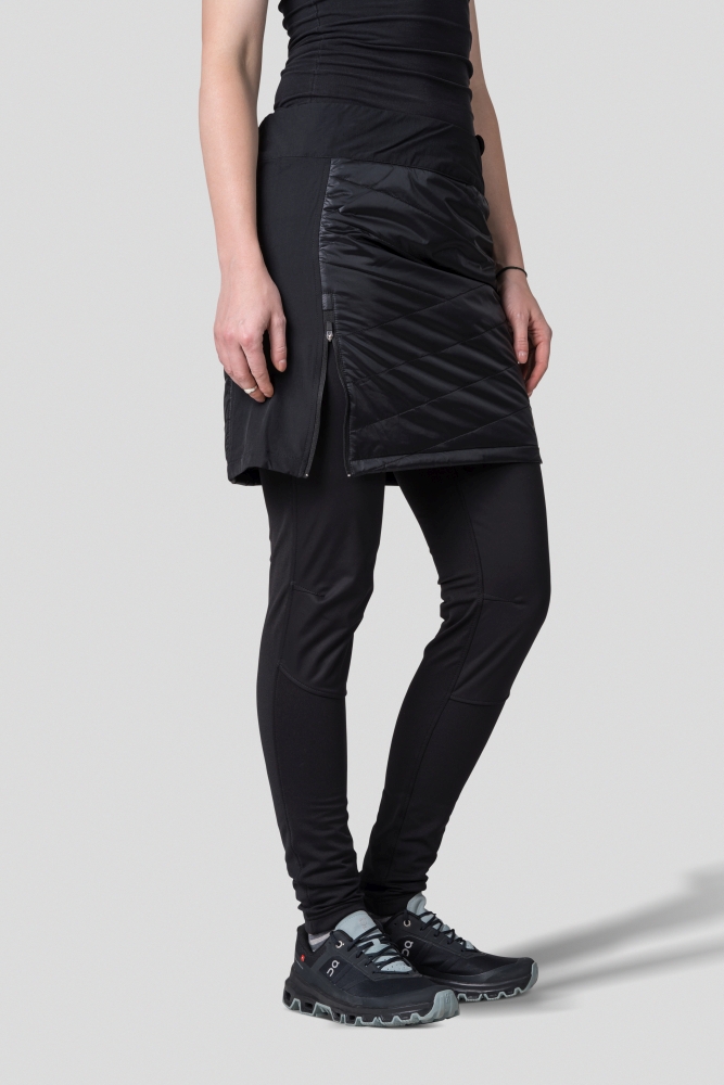 Dámská zateplená prošívaná sukně Ally se stane nepostradatelným funkčním doplňkem při všech vašich zimních sportovních aktivitách. Kombinace materiálů Airlite AC a AFT Double Weave zajišťuje ochranu proti větru a dešti, odolnost vůči oděru a rychlý odvod tepla, abyste zůstala v suchu. Izolace See s podílem vlákna značky DuPont Sorona poskytuje výbornou prodyšnost a ochranu proti chladnému vzduchu. Díky strečovým dílům na bocích vás sukně nebude omezovat v pohybu. Navíc ji díky dvoucestnému zipu bez problémů oblečete přes kalhoty. Duté vlákno je měkké, lehké a snadno tvarovatelné. Takže až se počasí zase umoudří a vy sukni nebudete potřebovat, snadno ji sbalíte do batohu, kde nezabere moc místa.