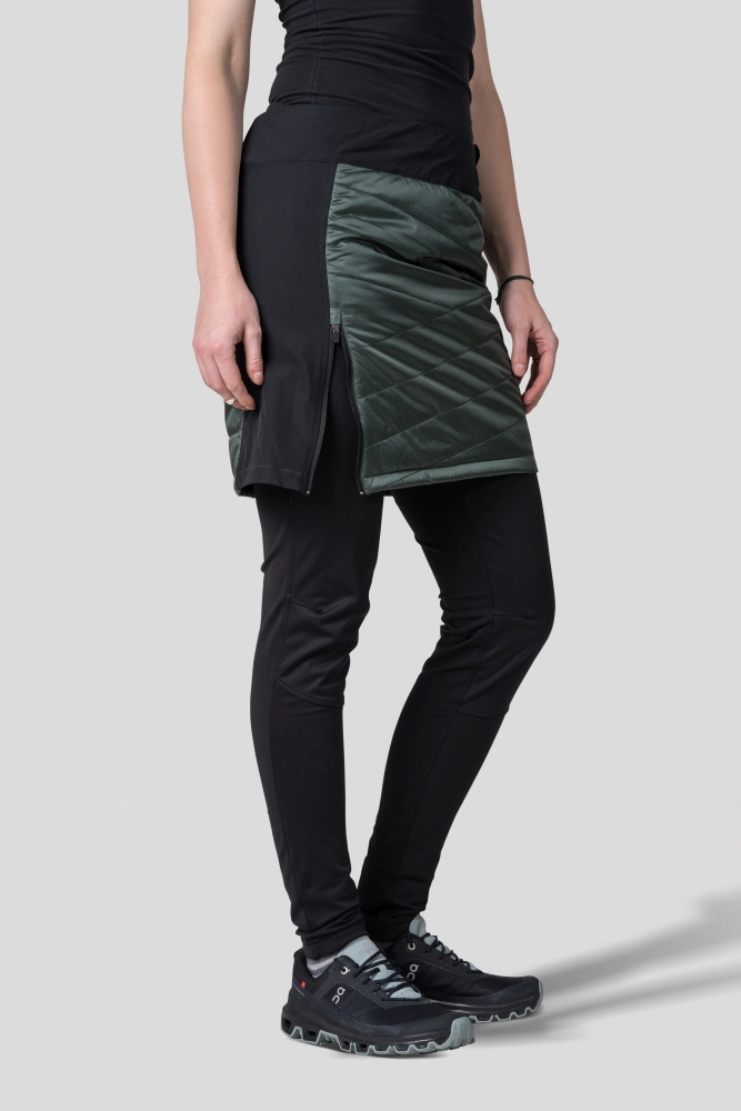 Dámská zateplená prošívaná sukně Ally se stane nepostradatelným funkčním doplňkem při všech vašich zimních sportovních aktivitách. Kombinace materiálů Airlite AC a AFT Double Weave zajišťuje ochranu proti větru a dešti, odolnost vůči oděru a rychlý odvod tepla, abyste zůstala v suchu. Izolace See s podílem vlákna značky DuPont Sorona poskytuje výbornou prodyšnost a ochranu proti chladnému vzduchu. Díky strečovým dílům na bocích vás sukně nebude omezovat v pohybu. Navíc ji díky dvoucestnému zipu bez problémů oblečete přes kalhoty. Duté vlákno je měkké, lehké a snadno tvarovatelné. Takže až se počasí zase umoudří a vy sukni nebudete potřebovat, snadno ji sbalíte do batohu, kde nezabere moc místa.