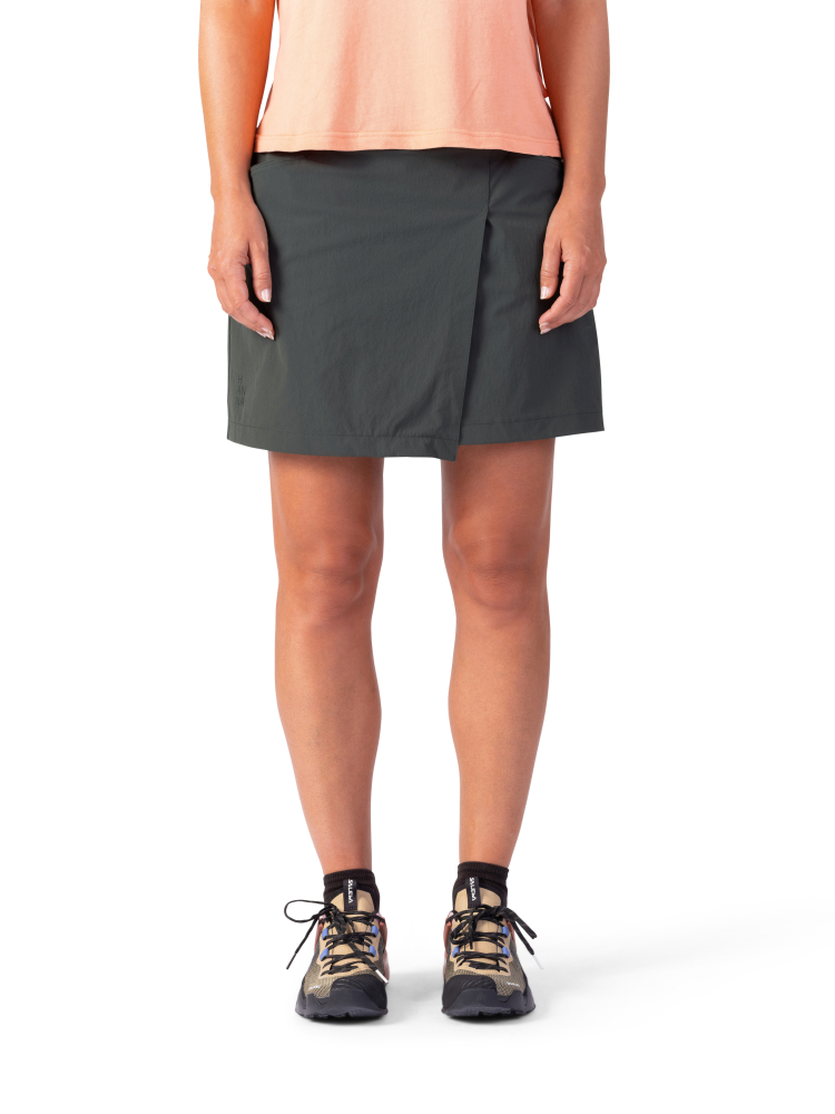 Dámská outdoorová sukně s integrovanými elastickými šortkami je vyrobena z funkčního a vysoce elastického a prodyšného materiálu AFT Stretch. Užší střih a pas částečně stažený do gumy se dobře přizpůsobí tvaru postavy. Sukně má dvě hlavní kapsy na předním díle. Integrované šortky jsou vysoce elastické a pomohou zamezit případnému tření vnitřní strany stehen při chůzi. Sukni využijete zejména na cestování, výlety do přírody či volný čas.