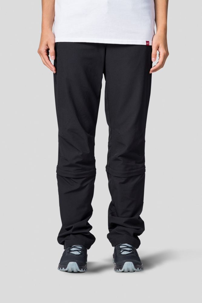 Víceúčelové dámské kalhoty Libertine, které se díky odepínatelným nohavicím během vteřinky změní na kraťasy. Využiješ je na trekking, turistiku nebo cestování. Pružný materiál AFT Stretch je příjemný na dotek, je prodyšný a lehký a nebude tě nijak omezovat v pohybu. Kalhoty chrání před slunečním zářením s UV 30. Střih Regular je pohodlný a kalhoty se dobře nosí díky anatomicky tvarovaným kolenům a pásku, kterým si snadno upravíš obvod pasu pro větší pohodlí. Pro snazší obouvání jsme přidali ještě rozparek na zip v dolní části nohavice. Abys nic netratila, všechny kapsy mají zipy - dvě hlavní na bocích, jedna stehenní a jedna zadní.