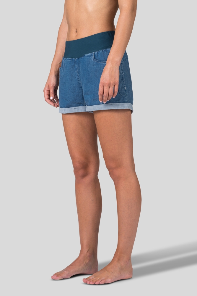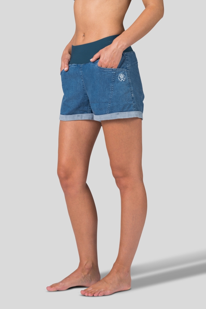 Dámské džínové kraťasy v Rafiki stylu, které na první pohled zaujmou unikátním Rafiki designem a dekorováním. Jsou skvělé na ven, pro cestu na stěnu nebo do práce či školy. Ale vůbec se neboj – navržené jsou od začátku tak, aby zvládly i náročnější lezeckou výzvu nebo rozhoupanou slacklinu v parku. Tak už vyraz ven.