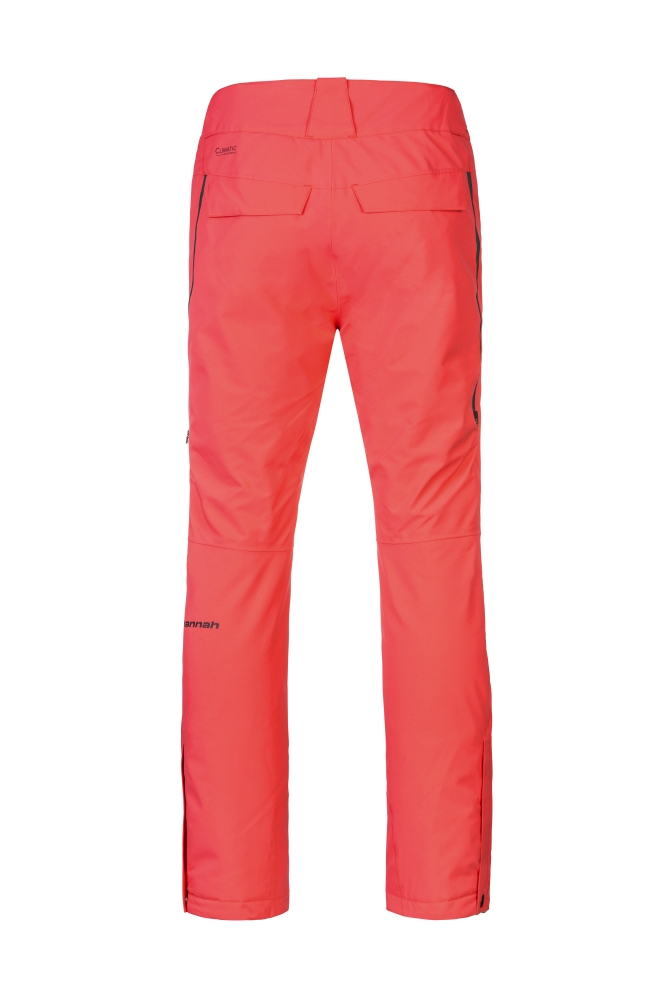 Dámské lyžařské kalhoty Hannah Hally II udělají radost všem náročným lyžařkám. Membrána Climatic Active Stretch s vodním sloupcem 15 000 mm spolu s podlepenými švy zajišťuje nepromokavost materiálu a díky použité technologii čtyřsměrně strečové tkaniny umožňuje neomezený pohyb. K pohodlí na svahu přispívají anatomicky tvarovaná kolena, částečně zateplený zadní díl, zvýšený sed či regulovatelný obvod pasu. Výrazné odvětrávání s voděodolnými zipy YKK není pouze praktickou vychytávkou, ale také designovým prvkem. Sněhová manžeta a rozparek na zip v dolní části nohavice nesmí chybět. Kalhoty zdobí kontrastní 3D logo. K těmto kalhotám lze zakoupit do kompletu lyžařskou bundu Hannah Amabel ve stejných parametrech i materiálech.