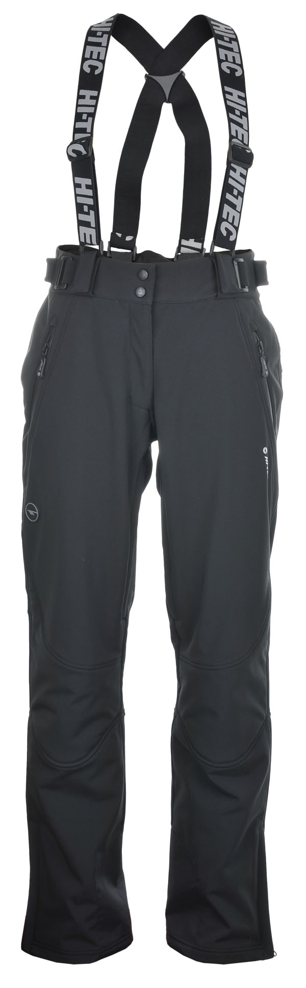 dámské kalhoty HI-TEC HI-TEC Lady Zora - dámské zimní softshellové kalhoty s membránou. Značkové outdoorové zimní kalhoty ze softshellu s kšandami vhodné na zimní sporty (lyže, sjezdovky a další). Kalhoty jsou z nepromokavého a částečně prodyšného třívrstvého softshellového materiálu s membránou, mají voděodolné zipy, odnímatelné a nastavitelné kšandy, pas s bočním stahováním. Na spodní části nohavice mají kolhoty zesílený materiál. Kalhoty využívají technologie HI-TEC: SOFT-TEC - třívrstvý pružný
