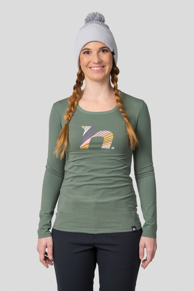 Dámské tričko Hannah Elara je vyrobené ze 95% bavlny a 5% elastanu, má klasický výstřih a dlouhý rukáv.
