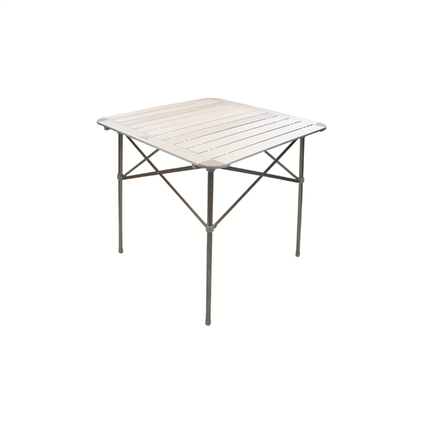 Skládací kempinkový stolek s hliníkovou lamelovou deskou a ocelovou konstrukcí. Ideální pro večeři pod hvězdami nebo na hraní stolních her. Dodáváno včetně tašky.