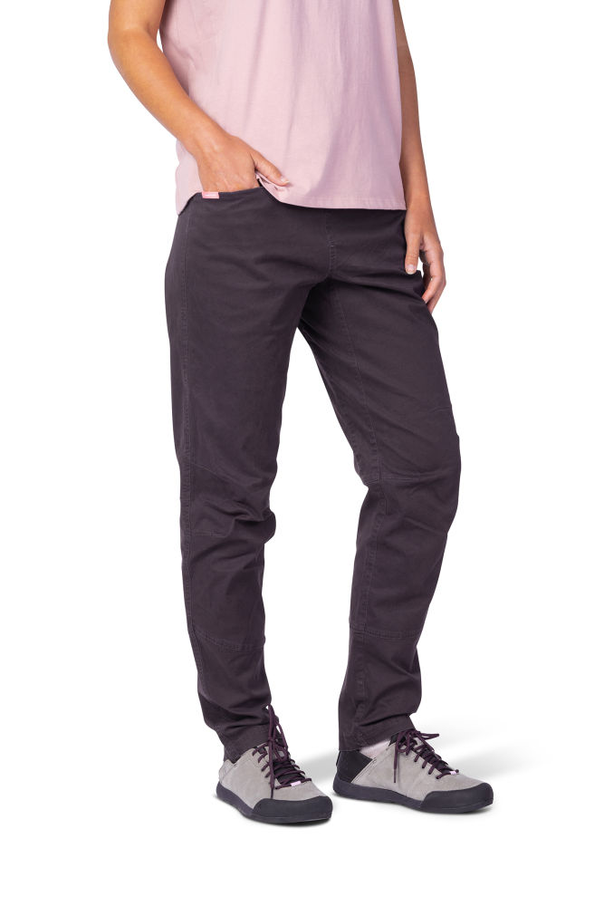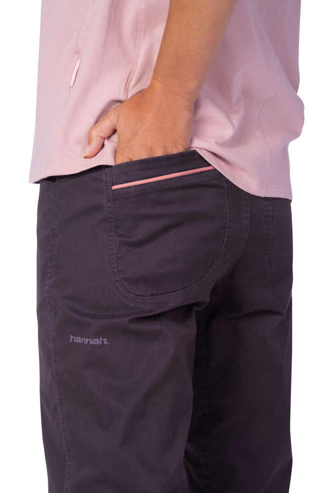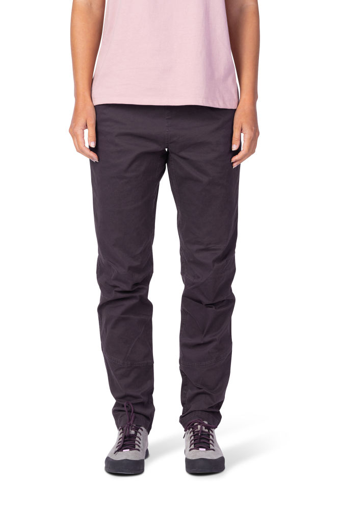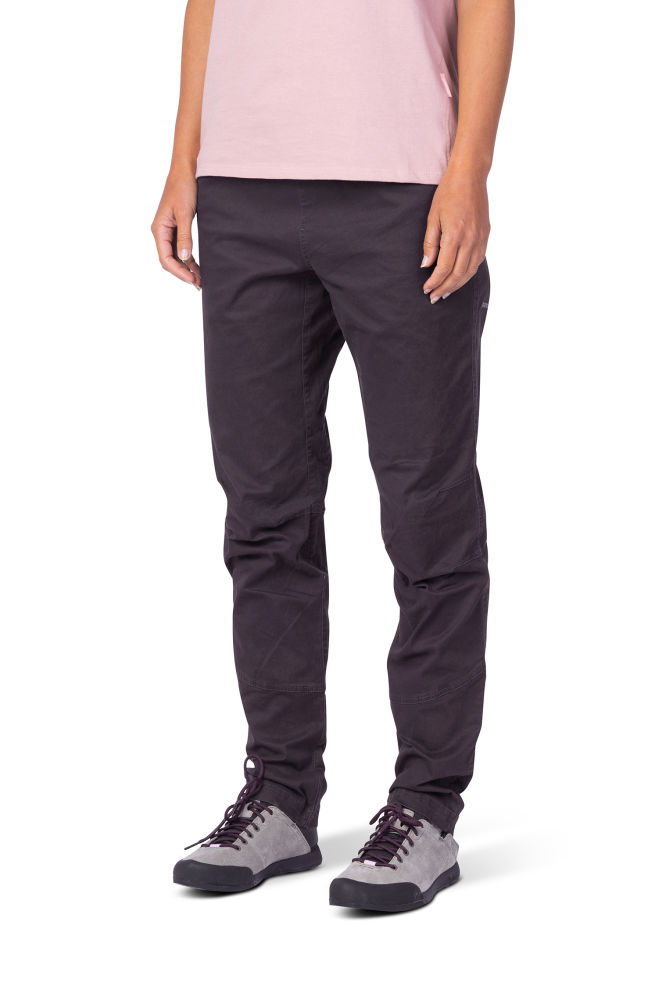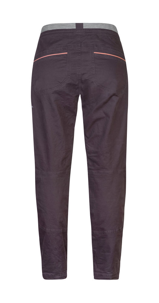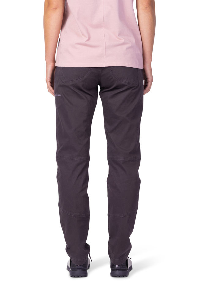 Dámské bavlněné kalhoty technického střihu s anatomicky tvarovanými koleny poskytují volnost pohybu a flexibilitu. Kalhoty jsou vyrobeny z kvalitní bavlny, která je prodyšná a příjemná na dotek, příměs elastanu dodává kalhotům poddajnost. Pas do gumy s regulací na šňůrku umožňuje individuální přizpůsobení a pohodlí během nošení. Kalhoty disponují 2 kapsami v přední i zadní části. Designovým prvkem jsou printované vnitřní kapsy. Díky svému univerzálnímu designu jsou kalhoty určené nejen pod skálu a do přírody, ale i pro každodenní nošení.