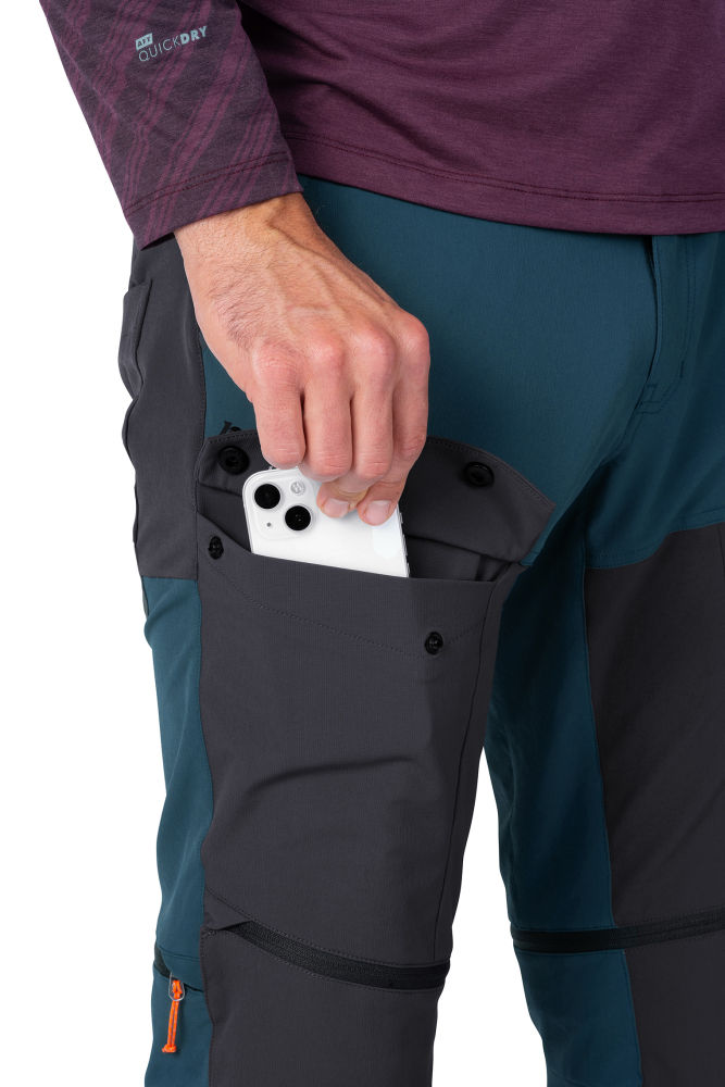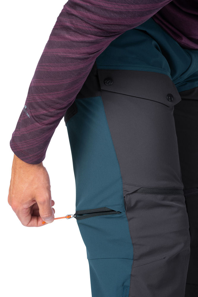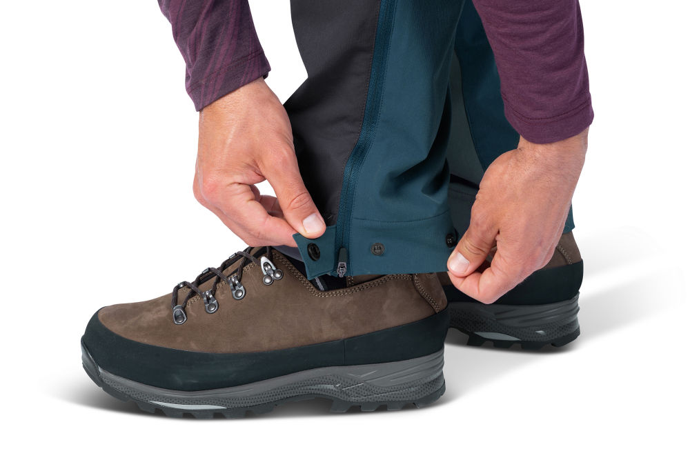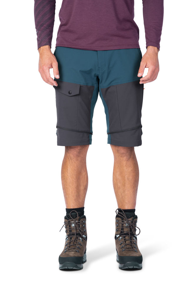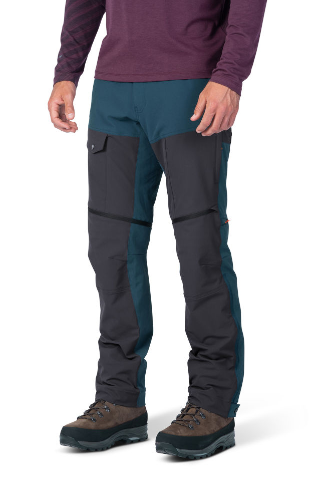 Pánské odepínatelné technické outdoorové kalhoty jsou vyrobeny z mechanicky odolného, větruvzdorného, trvale vodoodpudivého a prodyšného materiálu AFT Double Weave Pro. Povrchová úprava DWR - C0 bez PFC je šetrnější k životnímu prostředí a zajistí nenasákavost vrchního materiálu. Technický střih kalhot má šikmo řešené odepínatelné nohavice s bočním rozepínáním na zip. Odepnutím nohavic jsou z kalhot rázem parádní šortky s délkou lehce nad kolena. Šortky přesahují zip, což zamezuje případnému škrábání zipu. Nohavice mají anatomicky tvarovaná kolena a spodní kraj s regulací šířky na patent, který se přizpůsobí různé botě a potřebám. Kalhoty mají regulovatelnýobvod pasu páskem a disponují kombinací různých typů kapes v přední i zadní části kalhot. V přední části jsou dvě dostatečně hluboké a pohodlné kapsy, na stehnech dvě kapsy na zip. V zadní části pak kalhoty disponují dvěma níže posazenými hlubokými kapsami, které kromě praktické funkce mají i funkci designovou. Nový materiál AFT Double Weave Pro klade kromě již zmíněných technických parametrů důraz na aspekt udržitelné výroby. Materiál je navíc ošetřen povrchovou vodoodpudivou úpravou, která je bez fluorkarbonů, a tím je šetrnější k životnímu prostředí (PFC free). Certifikace Bluesign je zárukou transparentnosti a využití zdrojů šetrných k životnímu prostředí při výrobě. Kalhoty jsou ideální na vícedenní turistiku a náročný pohyb v horách.