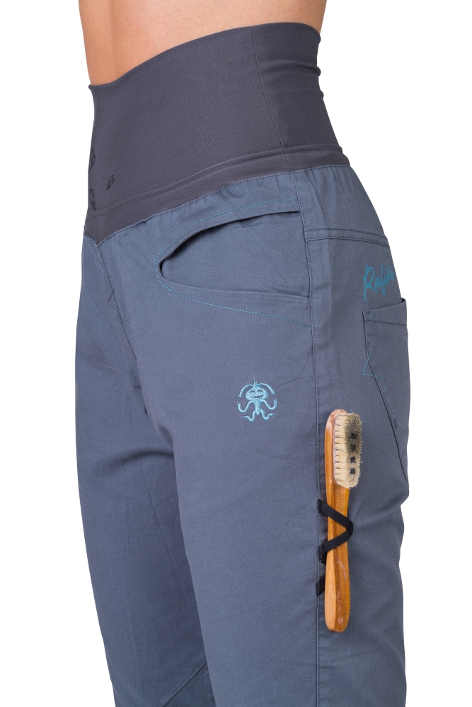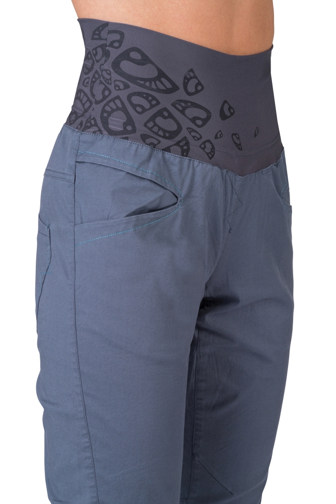 Tyto dámské lezecké kalhoty civilnějšího vzhledu jsou prodyšné a odolné. Zúžený střih je pohodlný i díky pružnému materiálu. Na lezení jsou jako dělané. Nechybí široká a pohodlná manžeta v pase, vsazený klín, tvarovaná kolena, nebo nohavice vzadu stažené do gumy, aby dobře držely nad kotníkem. Co víc si na skály nebo boulder přát. Poutka na malý nebo velký kartáček fungují zároveň jako atraktivní prvek.