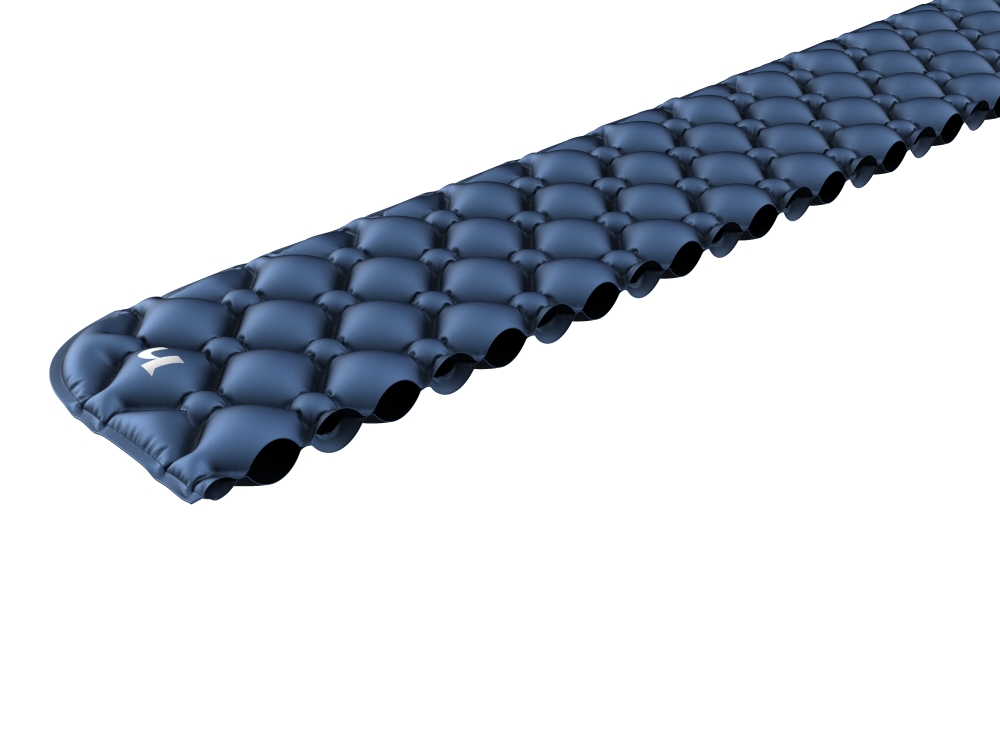 Dvousezónní nafukovací karimatka s konstrukčně oddělenými komorami má svrchní vysoce odolný nylonový materiál s TPU (thermopolyuretan) úpravou, který dobře odolává mechanickému opotřebení i hrubšímu zacházení. Protiskluzový potisk na spodní straně karimatky zamezuje posunu karimatky po podlážce stanu či plachtě.