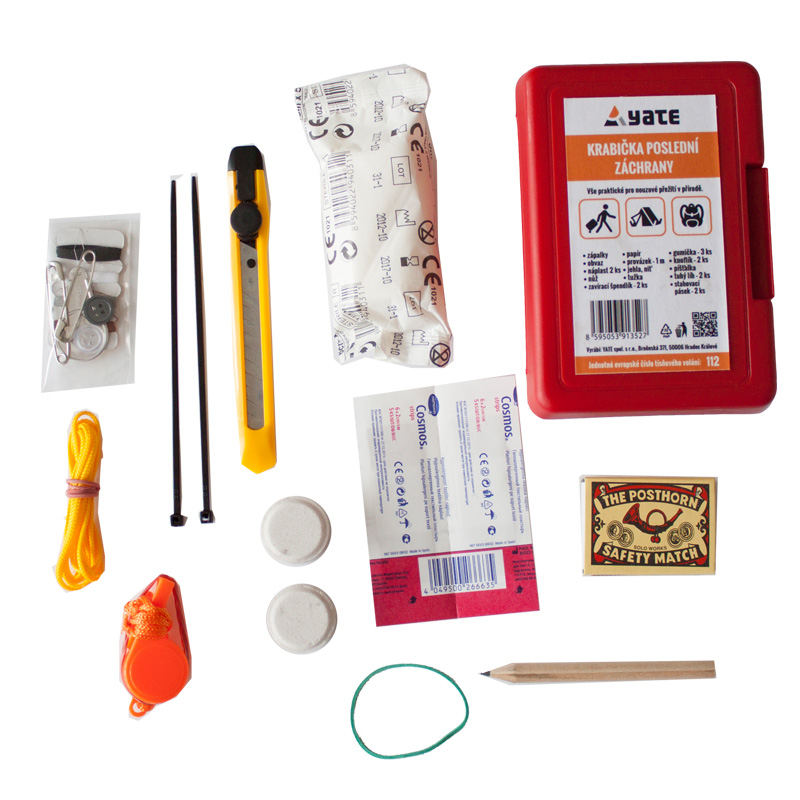 KPZ obsahuje vše nutné, co potřebujete v případě, že se ocitnete v nesnázích. Je určena nejen do přírody a hor, ale i pro běžné cestování do batohu, kufru nebo do auta. V případě potřeby do ní můžete doplnit ještě několik maličkostí podle vlastního uvážení. Plastová krabička je odolná proti rozbití a vlhku. Sada obsahuje: zápalky, obvaz, náplasti, nůž, tužku, papír, 1 m provázku, nit, jehlu, 2x zavírací špendlík, 3x gumička, 2 knoflíky, píšťalku, tuhý lih - 2 tablety, stahovací pásky, plastovou krabičku.