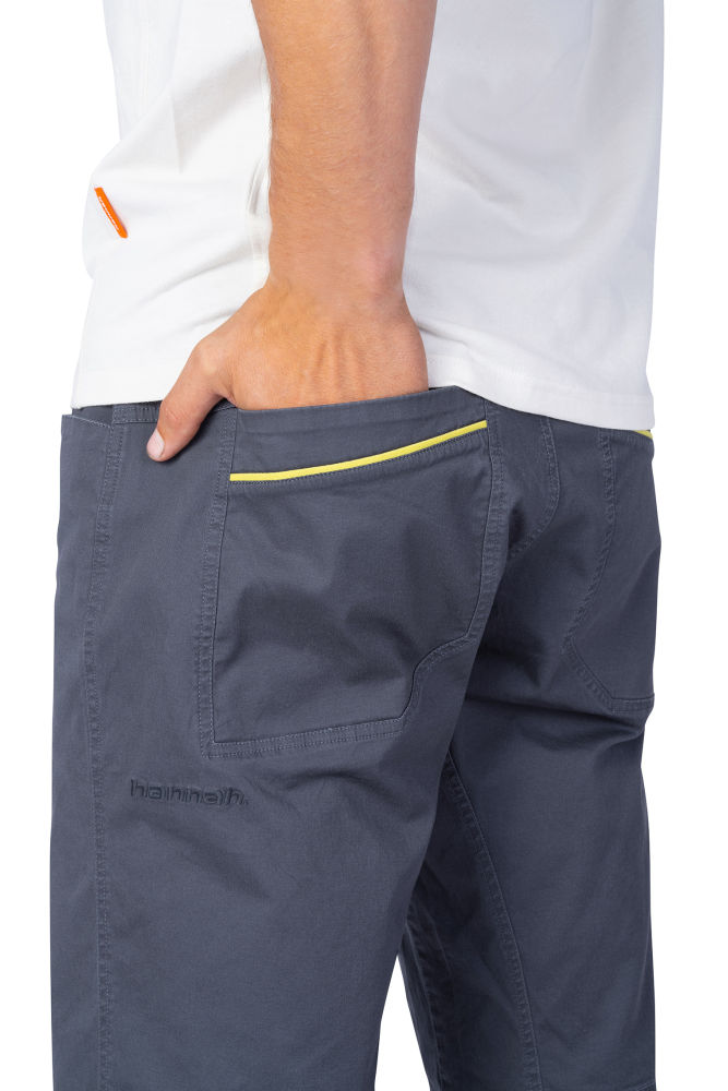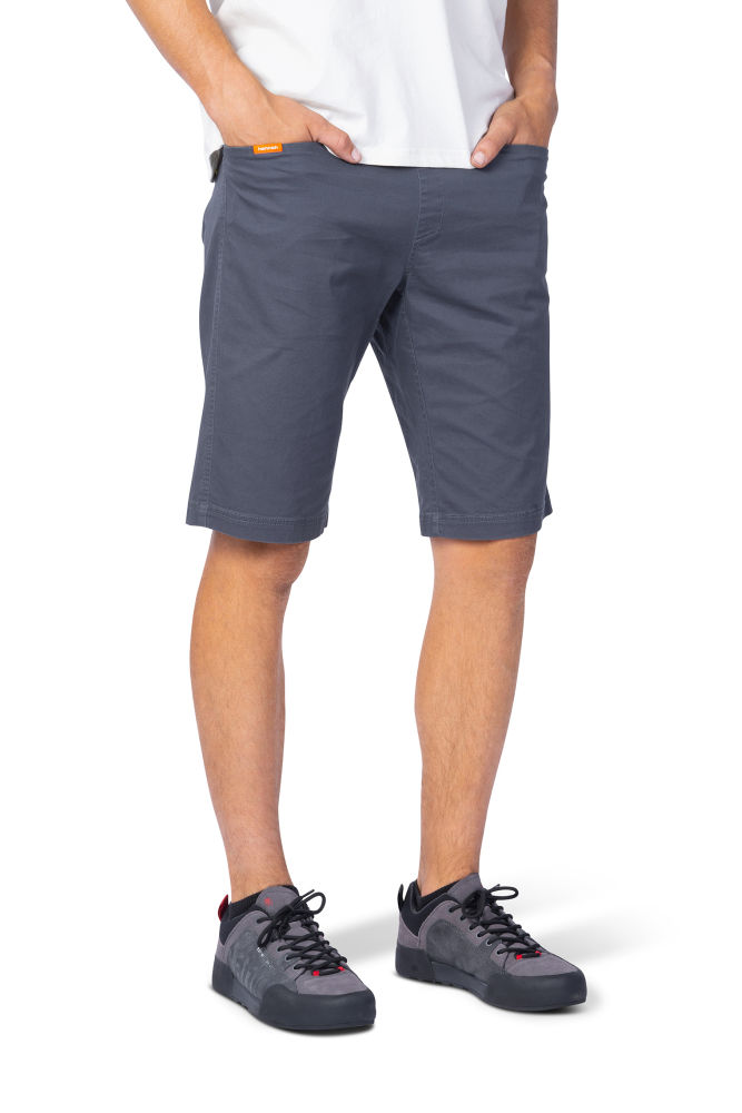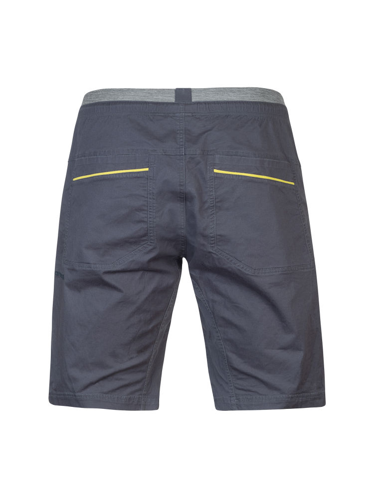 Pánské bavlněné kraťasy technického střihu poskytují volnost pohybu a flexibilitu. Vyrobeny jsou z kvalitní bavlny, která je prodyšná a příjemná na dotek, příměs elastanu dodává kraťasům poddajnost. Pas do gumy s regulací na šňůrku umožňuje individuální přizpůsobení a pohodlí během nošení. Kraťasy disponují dvěma rovně šitými kapsami v přední i v zadní části. Designovým prvkem jsou printované vnitřní kapsy. Díky svému univerzálnímu designu jsou určené nejen pod skálu a do přírody, ale i pro každodenní nošení.
