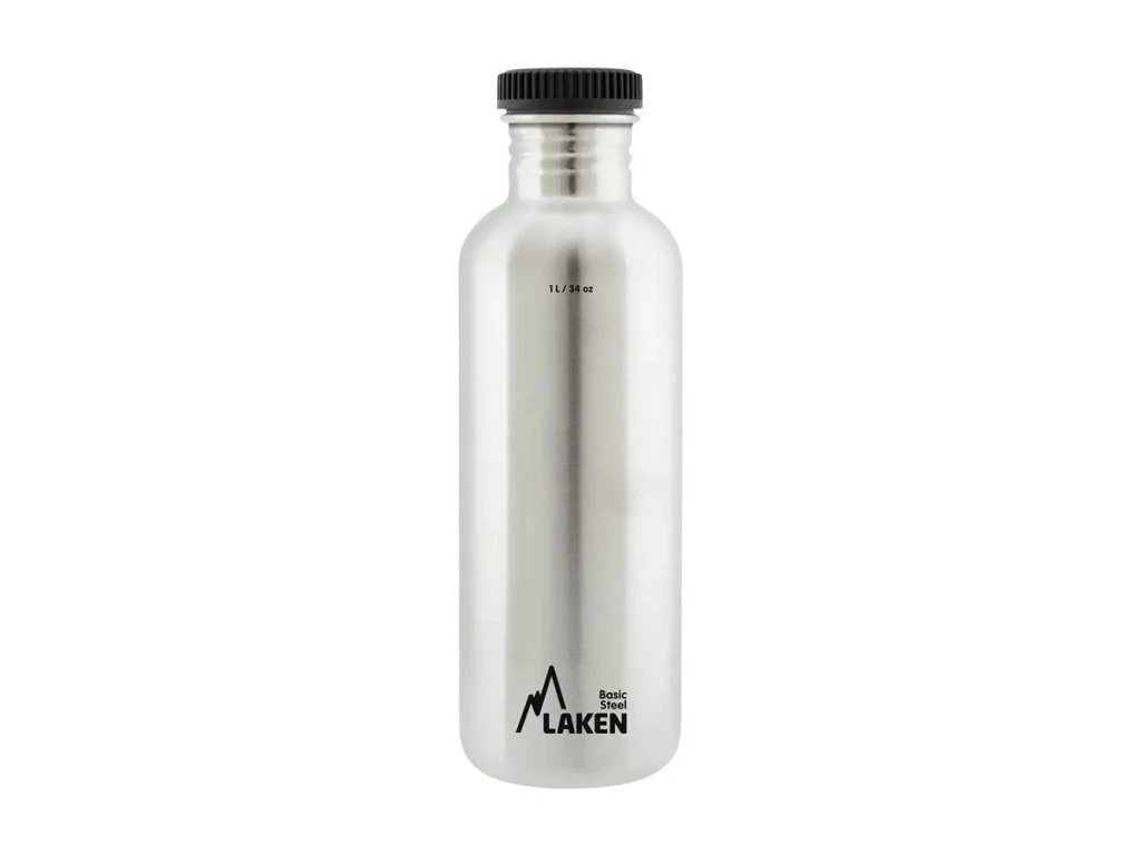 Moderní jednoplášťová láhev LAKEN z nerezové oceli 18/8, která zajišťuje naprostou bezpečnost nápoje.