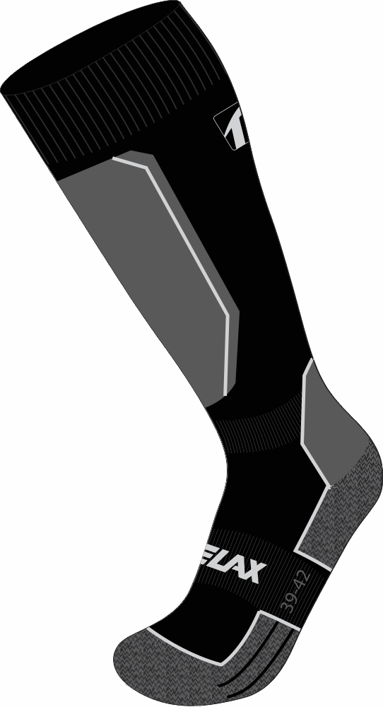 Všestranné lyžařské ponožky Relax CARVE jsou velmi komfortní díky ochranným zesíleným prvkům SOLE PAD v oblasti prstů a pat a speciálnímu švu FLAT SEAM, který braní otlačením na prstech. Zesílením v oblasti holenní kostí je noha chráněna proti nepříjemným pocitům tření nebo otlačení. Komfortní elastický lem FLEXI GRIP drží ponožku pevně na noze, přitom nebrání volnému pohybu svalů.