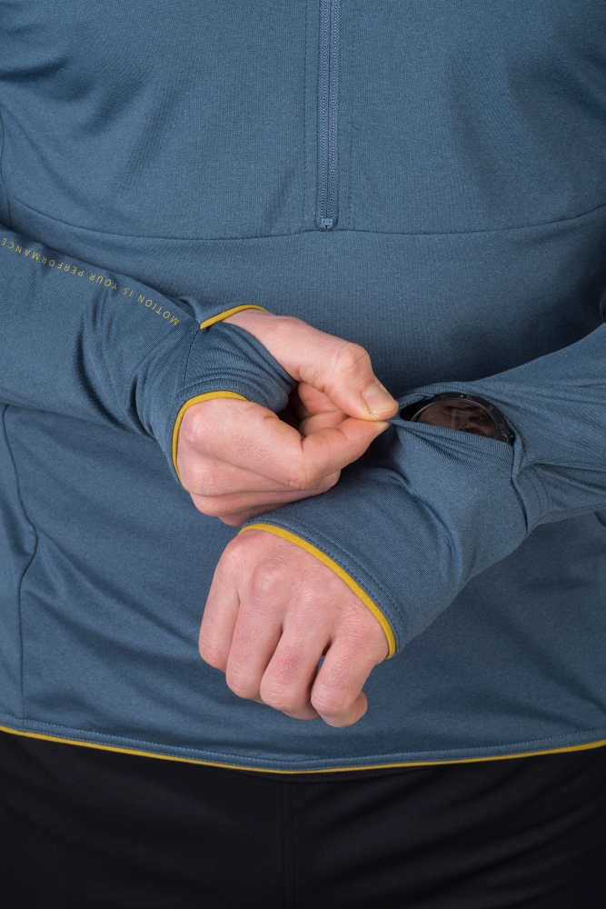 - rukávy zakončené do gumy s otvorem na palec