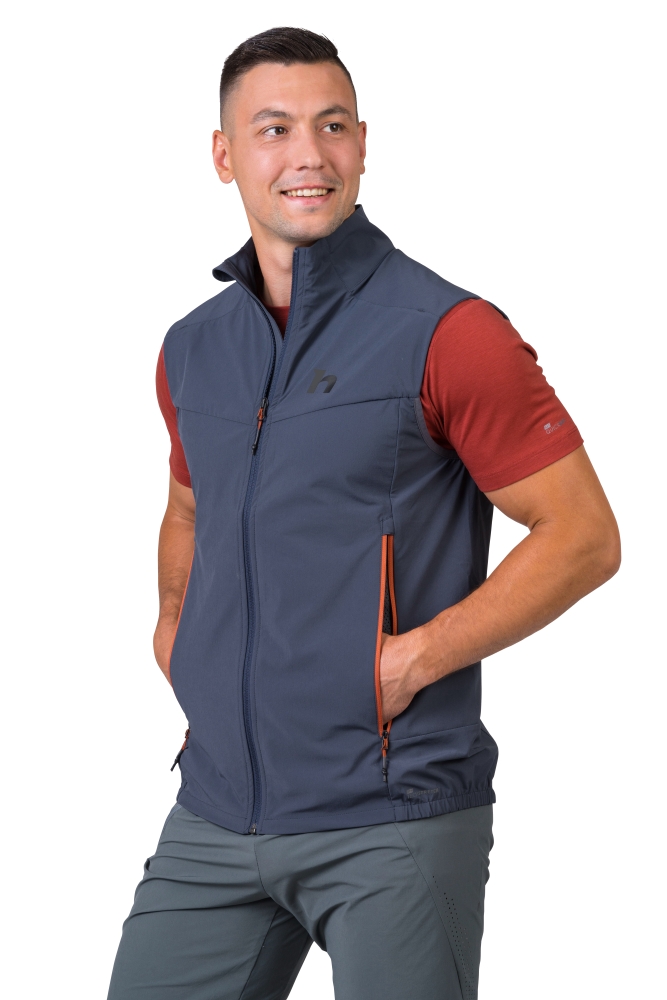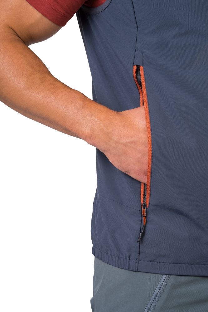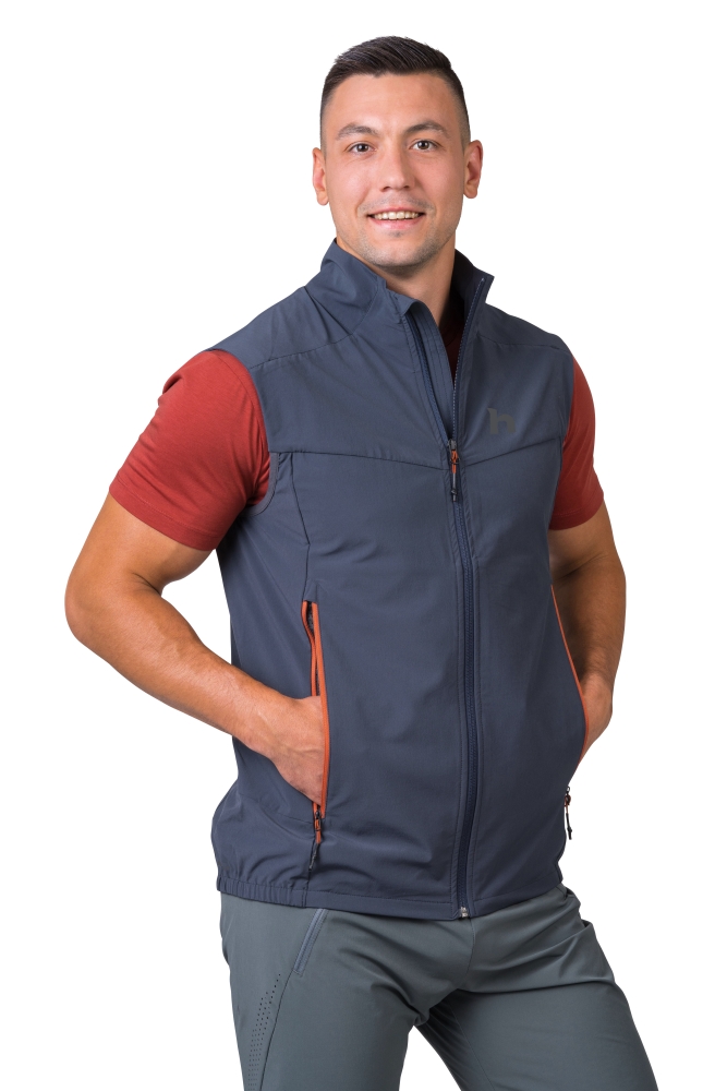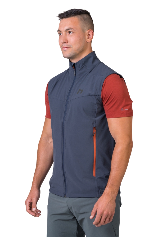 Pánská lehká, vysoce elastická a mechanicky odolná outdoorová vesta z materiálu AFT Tech Stretch. Povrchová úprava DWR - C0 bez PFC je šetrnější k životnímu prostředí a zajistí vodoodpudivost vrchního materiálu. Reverzní YKK hlavní zip zakončený stojáčkem s krycí légou pro vyšší komfort při nošení. Dvě výše umístěné hlavní kapsy na zip jsou snadno dosažitelné i při nošení batohu či sedáku. Spodní kraj vesty je stažený do gumy. Materiál je ošetřen povrchovou vodoodpudivou úpravou, která je bez fluorkarbonů, a tím je šetrnější k životnímu prostředí (PFC free). Vesta je určena díky své vysoké prodyšnosti a sportovnímu střihu pro výkonnostní outdorové aktivity včetně VHT.