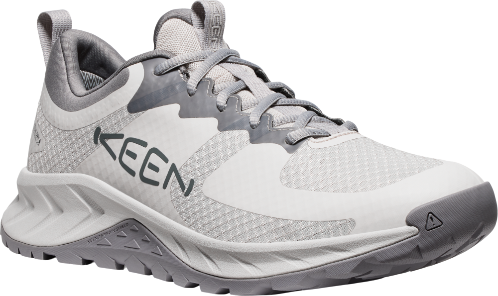 Nízká pánská bota pro sportovní turistiku zaručuje nepromokavost díky voděodolné prodyšné membráně KEEN.DRY a ekologické voděodolné úpravě DWR bez škodlivých chemikálií PFAS.