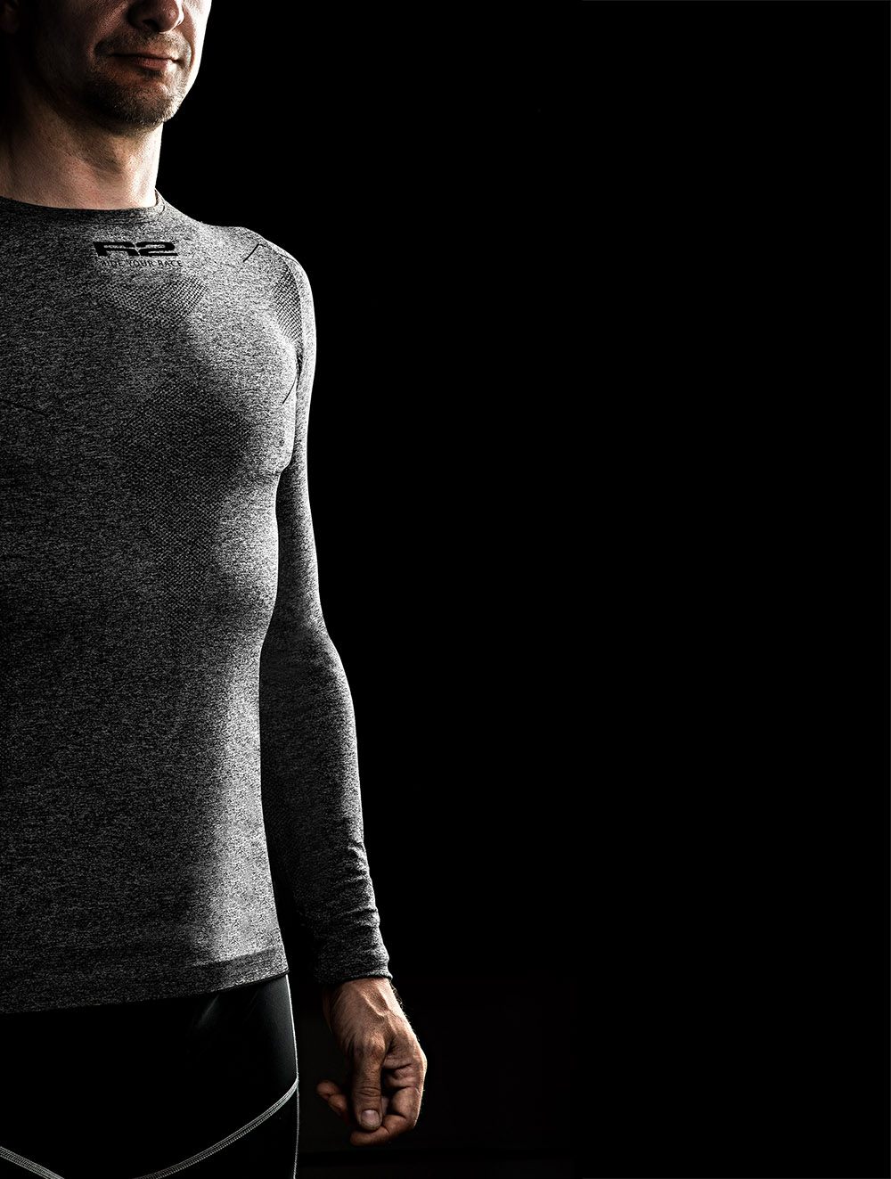 Nová technologie povrchové úpravy jednotlivých vláken zajišťuje, že R2 funkční prádlo je extrémně lehké a velmi příjemné na dotyk. R2 funkční prádlo bylo navrženo tak, aby poskytovalo pocit maximálního komfortu a pohodlí. Dokonale reguluje tělesnou teplotu, odvádí vlhkost od pokožky a rychle schne. Chladí, když je teplo, a hřeje, když je zima. Společně s funkčními zónami, zvýrazněním bezešvou technologií zajistí, že už nikdy nebude Váš pohyb ničím limitován.