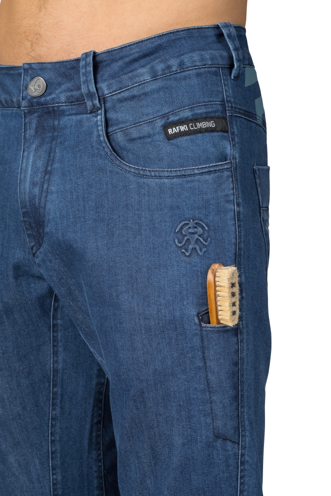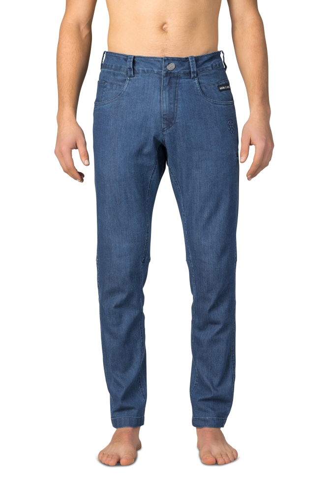 Vyúženější lezecké džíny v klasickém 'pětikapsovém' stylu, které se hodí pro podzimní bouldering, do práce, ale i na noční výlety za zábavou po lezeckém tréninku