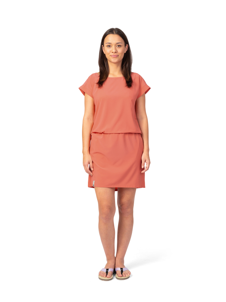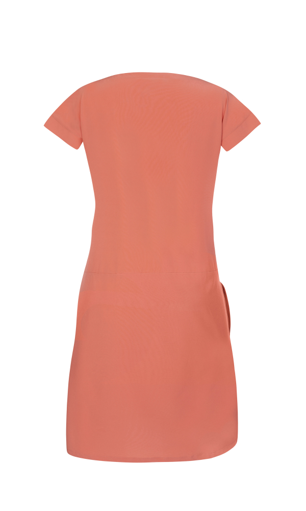 Dámské lehoučké šaty jsou vyrobeny z funkčního a vysoce elastického a prodyšného materiálu AFT Stretch. Neuvěřitelně lehký, jemný a příjemný funkční elastický materiál oceníte během horkých letních dní. Kratší střih s vnitřním stahováním v pase, které je chytře schované v přední kapse. Širší lodičkový výstřih a širší kratší rukávy dávají prostor ventilaci vzduchu. Jednobarevné provedení a jednoduchý styl oceníte pro běžné nošení, cestování a volný čas. Antistatická úprava materiálu.