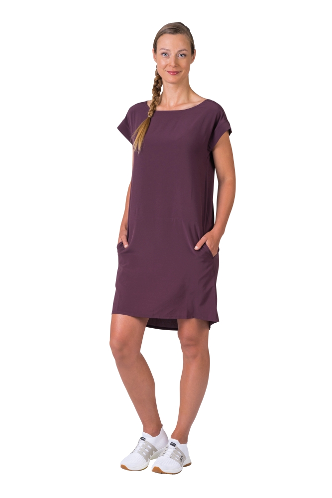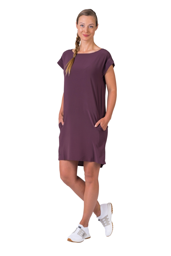 Dámské lehoučké šaty jsou vyrobeny z funkčního a vysoce elastického a prodyšného materiálu AFT Stretch. Neuvěřitelně lehký, jemný a příjemný funkční elastický materiál oceníte během horkých letních dní. Kratší střih s vnitřním stahováním v pase, které je chytře schované v přední kapse. Širší lodičkový výstřih a širší kratší rukávy dávají prostor ventilaci vzduchu. Jednobarevné provedení a jednoduchý styl oceníte pro běžné nošení, cestování a volný čas. Antistatická úprava materiálu.